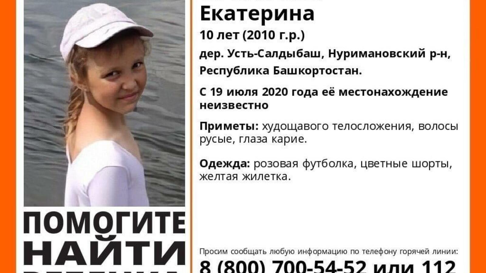В Башкирии родным пропавшей без вести 10-летней Екатерины Столбовой нужна помощь в поисках