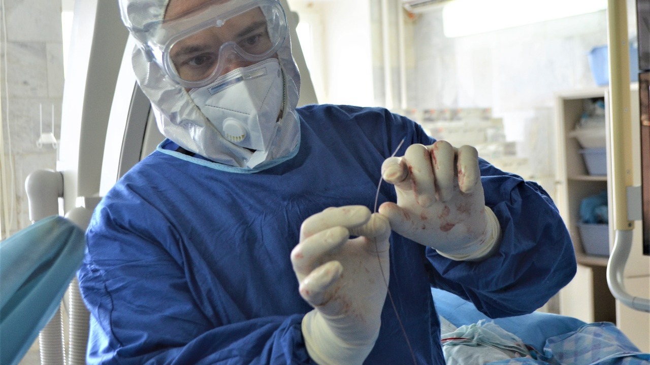 «Четвертый месяц мы работаем в сложных условиях, но ни на один день кардиоцентр не останавливал прием и выписку больных сердечно-сосудистого профиля. Объемы в какой-то период времени уменьшились, но сейчас мы догоняем показатели, так как научились работать в сложных условиях. Работать непросто: наши доктора полностью одеты в защитные костюмы, плюс надевается 7-килограммовый свинцовый фартук. Мы в предоперационную заходим полностью экипированные. Это создает дополнительную нагрузку на организм и требует большей паузы между пациентами. Нужно все обработать, переодеться, немного отдохнуть. Сейчас мы научились это делать и, работать стало спокойнее и проще», - рассказала главный врач.