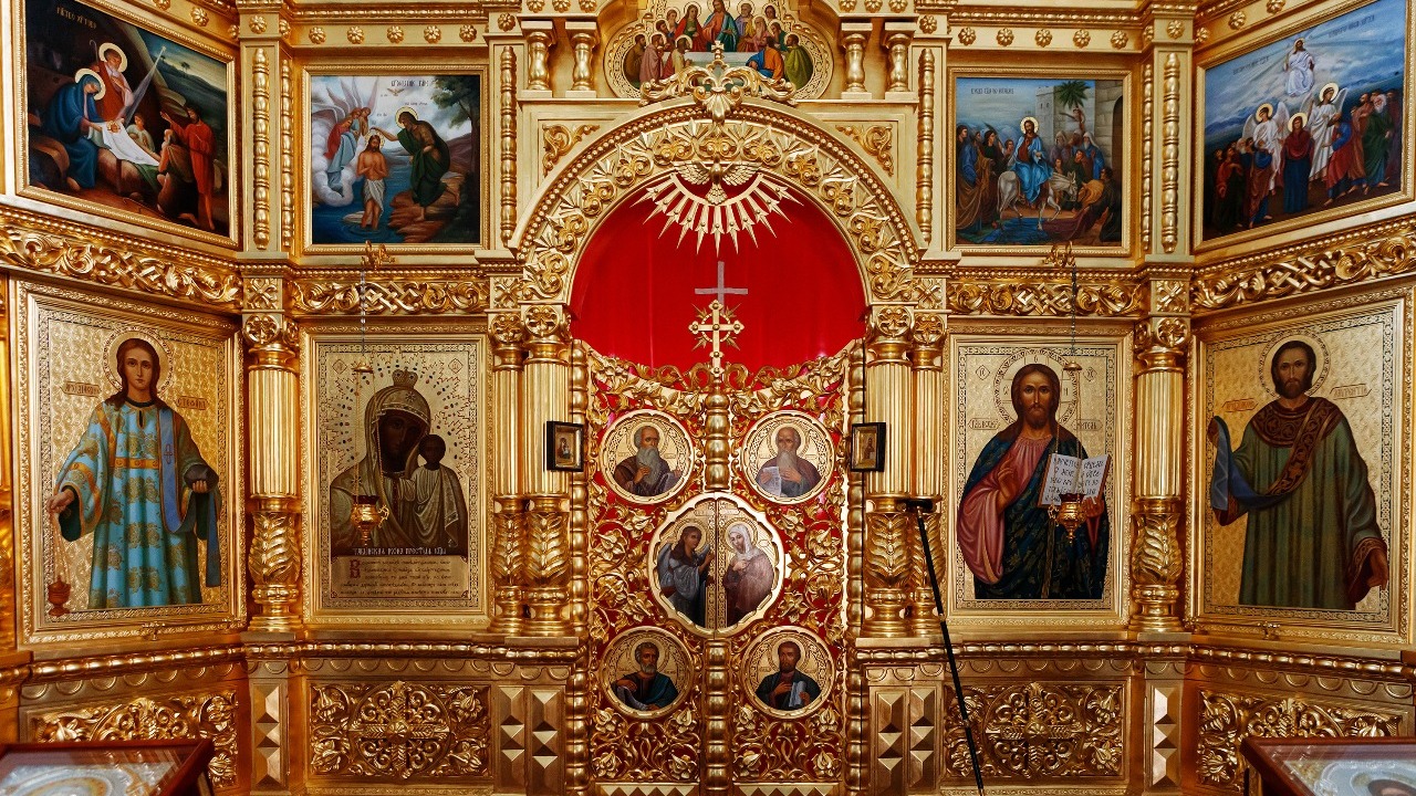 Особенностью этого храма является кованый иконостас, перевитый искусно выкованной виноградной лозой.