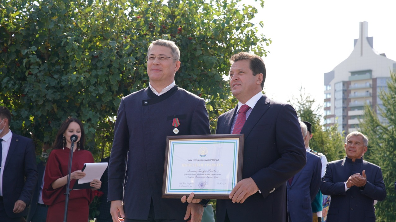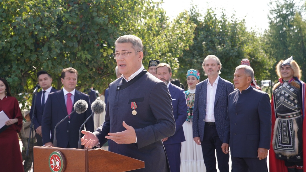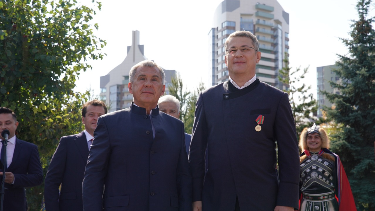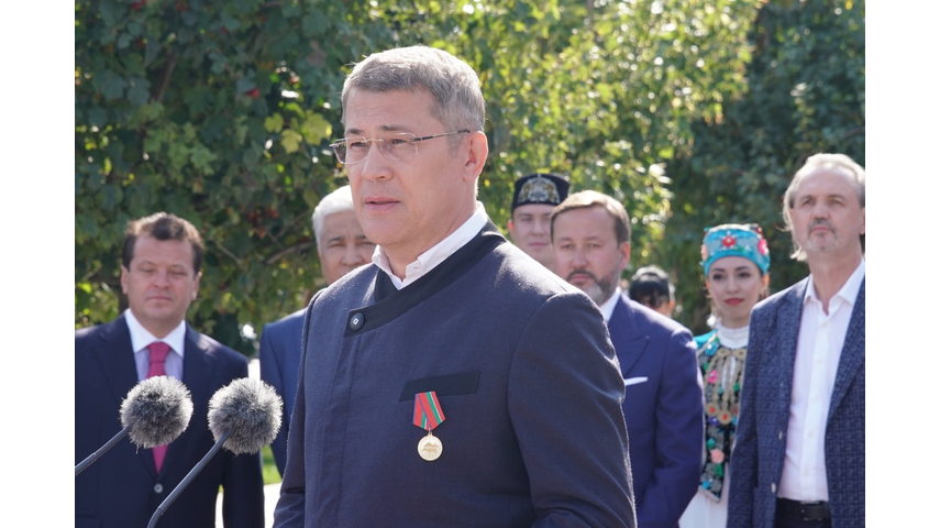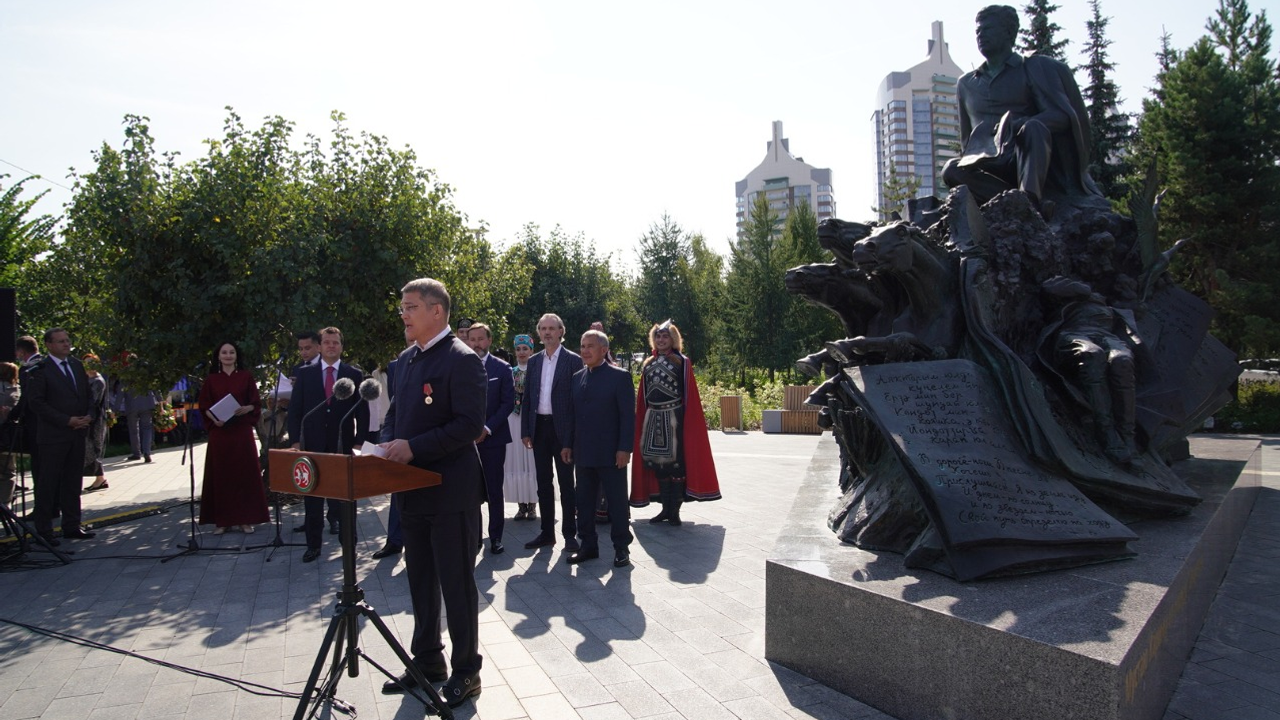 «В прошлом году, в год столетия Башкортостана, мы открывали памятник Габдулле Тукаю в Уфе. В этом году, уже Татарстану исполняется 100 лет, и сегодня вновь радостное событие для наших народов, мы открываем памятник Мустаю Кариму — классику Башкирской литературы, поэту, драматургу, публицисту, участнику Великой Отечественной войны, общественному деятелю, имя которого золотыми буквами вписано в историю российской и мировой литературы. Произведения Мустая Карима всегда отличали глубокий смысл, искренность, красота и богатство языка, национальный башкирский колорит», — подчеркнул, приветствуя гостей церемонии, президент Татарстана Рустам Минниханов.Рустам Минниханов наградил Радия Хабирова медалью к 100-летию образования ТАССР за вклад в укрепление отношений двух республик.