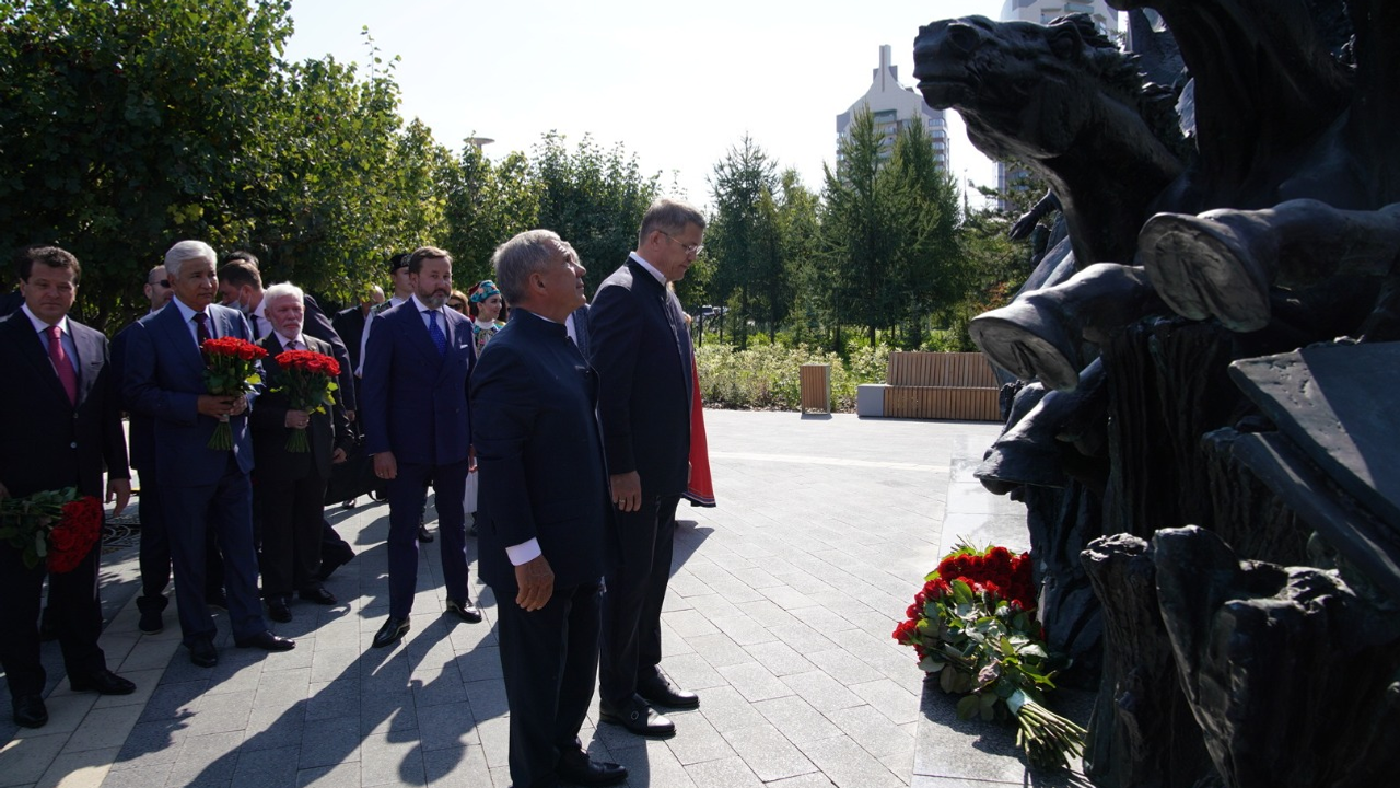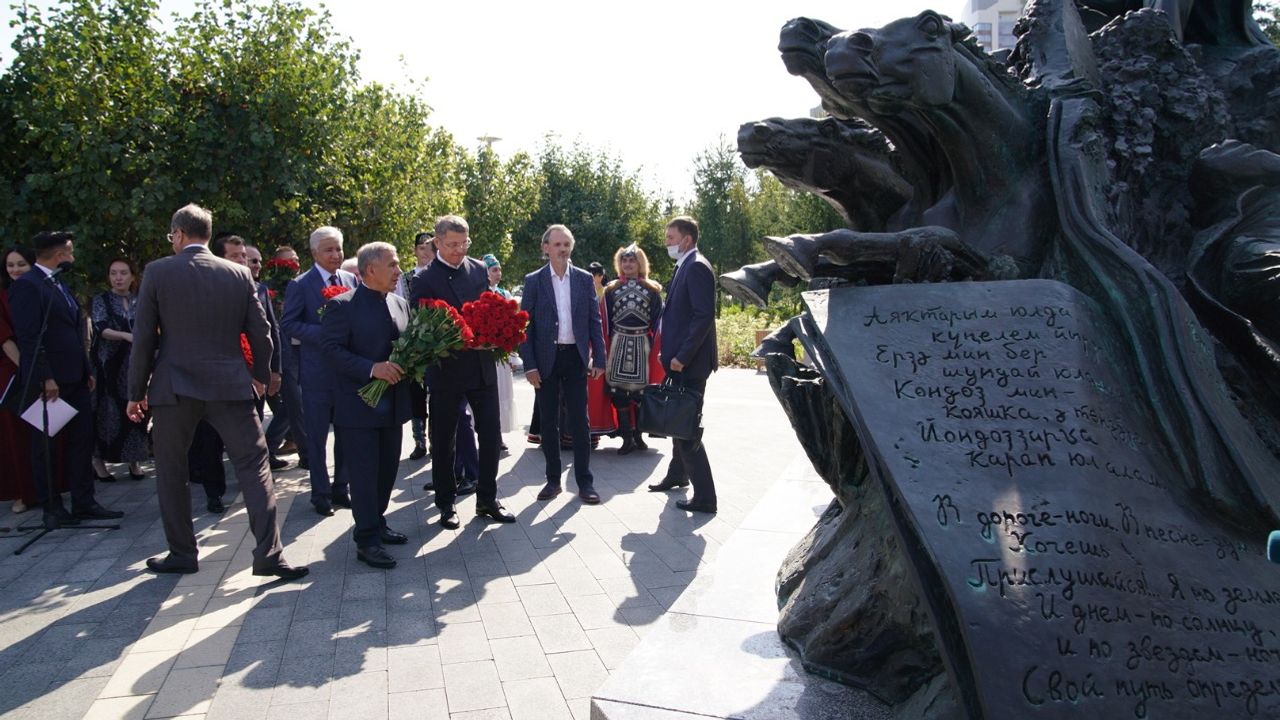«Для нас большая честь открыть памятник Мустаю Кариму в сердце Казани. Для нас он всегда был духовным наставником, он любил Татарстан и выступал за братскую дружбу двух народов. Рустам Нургалиевич, позвольте считать открытие этого памятника символом нерушимой дружбы Башкортостана и Татарстана, и нашей с вами настоящей мужской дружбы», — сказал Радий Хабиров.