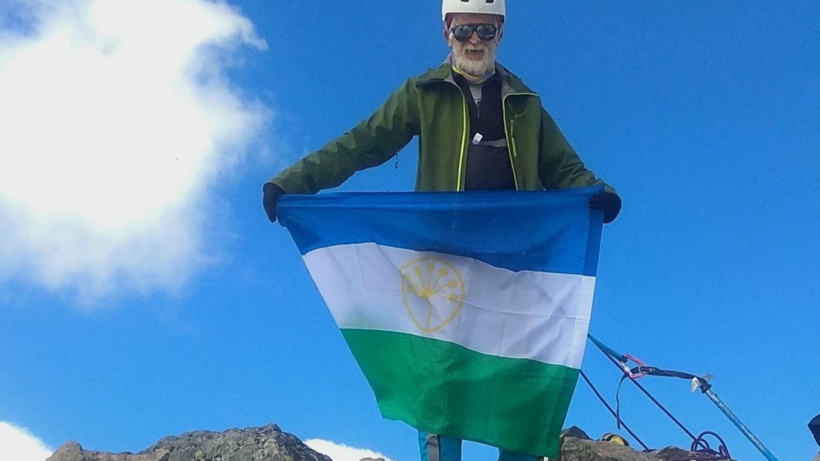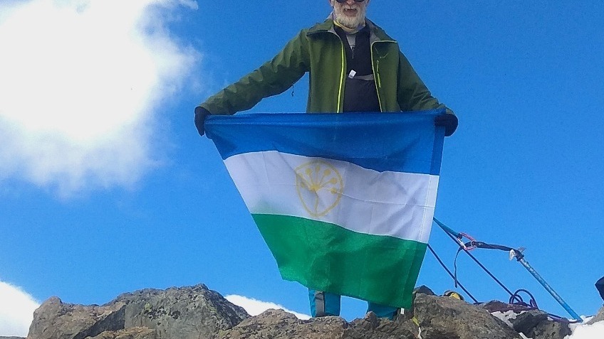 Писатель и путешественник Камиль Зиганшин поднял на горе Белуха флаг Башкирии