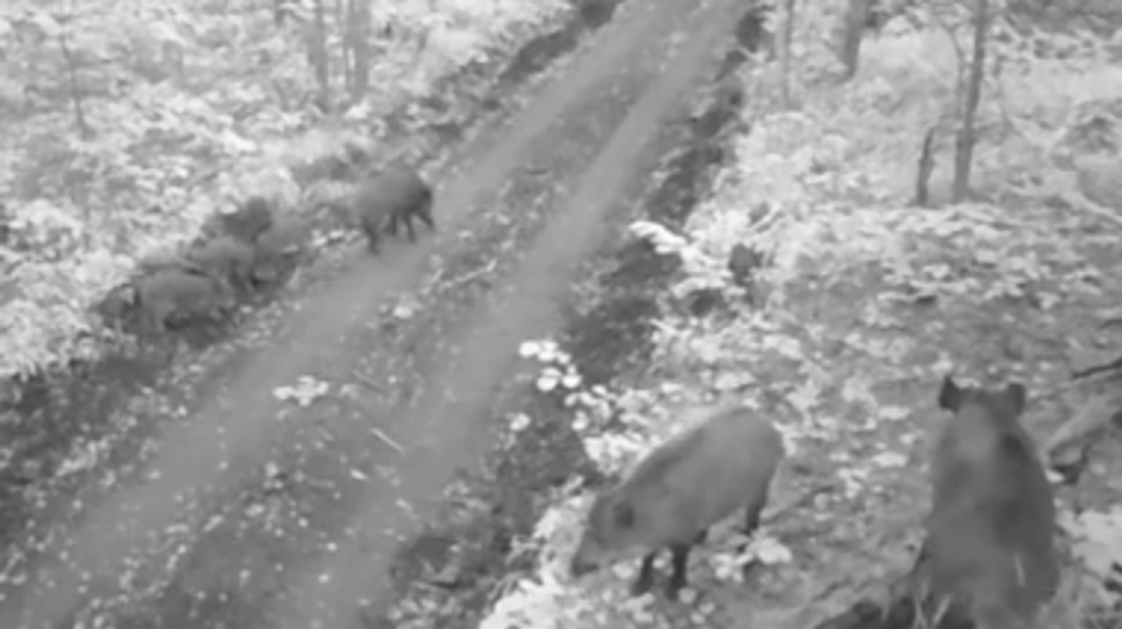 В нацпарке «Башкирия» на рассвете фотоловушка поймала семейство кабанов