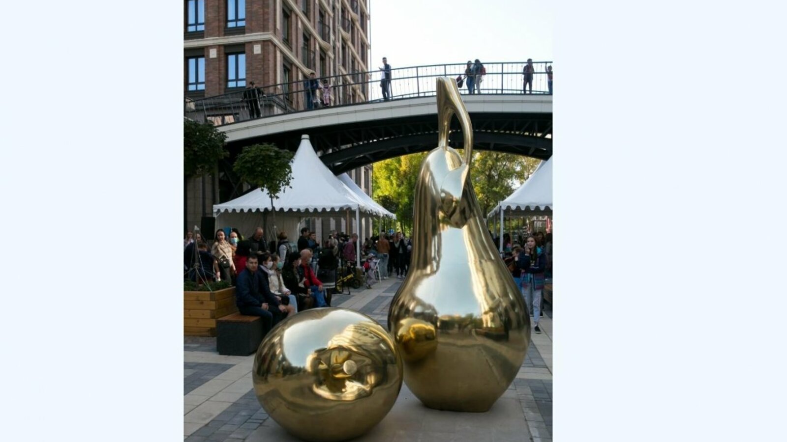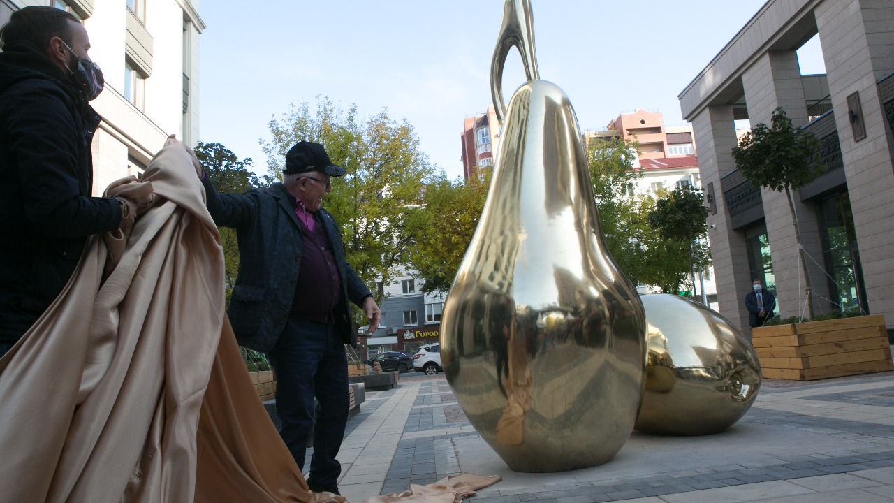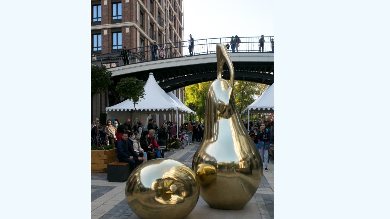 На территории жилого комплекса «Аристократ» прошел фестиваль «Золотая осень». Застройщик квартала – «Жилстройинвест» – приурочил к празднику открытие арт-объекта «Дары природы». Покрывало с металлических фруктов – яблока и груши – торжественно стянули генеральный директор компании Рабис Салихов и его заместитель Иван Зорин. Скульптурная композиция выполнена в золотом цвете и удачно вписалась в архитектуру «Аристократа».