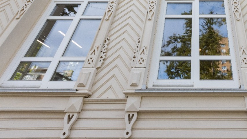 В 2017 году «Жилстройинвест» решил его отреставрировать и подошел к этому достаточно скрупулезно. Многие детали пришлось делать заново, ориентируясь на сохранившиеся фотографии и рисунки. Например, обшивку выполнили с нуля. Над восстановлением резных наличников трудились специалисты из Оренбурга. По крупицам возрождали балкон, некогда украшавший южную сторону особняка и полностью утраченный в последние годы. Имеющиеся снимки помогли воссоздать и филенчатые двери, венчающие парадный вход в дом. Кованный козырек над ними – это работа 1913 года, сохранившаяся без изменений.
