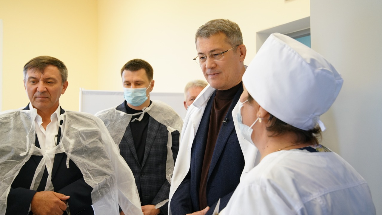Руководитель республики осмотрел помещения ФАПа, поинтересовался, насколько эффективно муниципалитет работает над привлечением медицинских кадров. По словам главы Аургазинского района Зуфара Идрисова, в этом направлении очень помогает программа «Земский доктор». Так, в 2020 году в Толбазинскую ЦРБ приехали уже семь специалистов, до конца года ожидают ещё четверых.