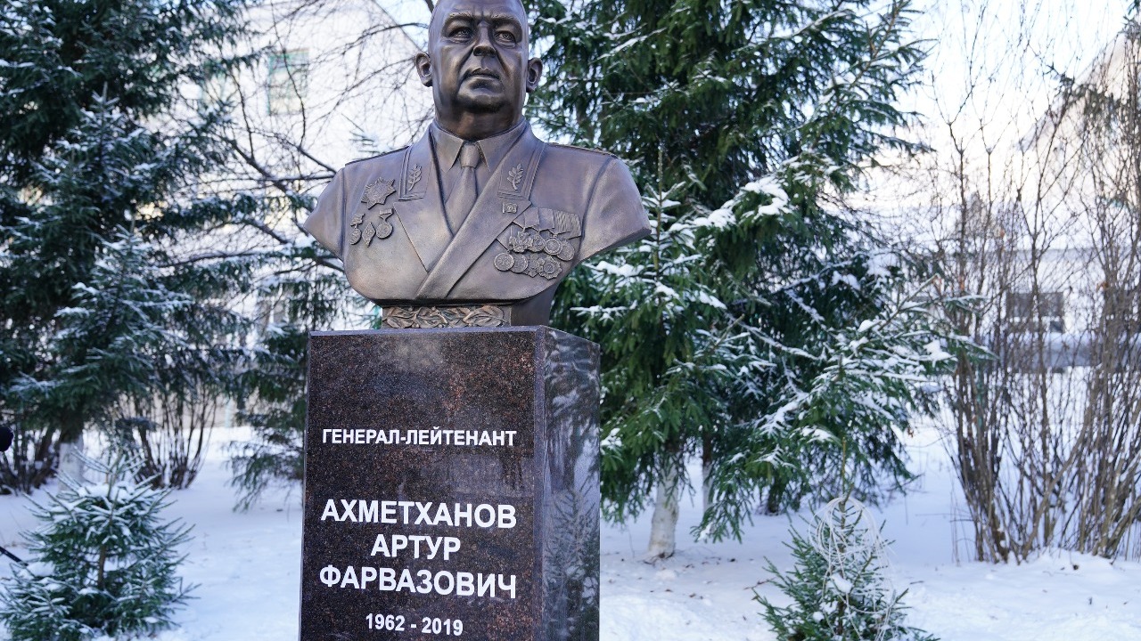 Сегодня в селе Малояз Салаватского района, на территории Дуванского многопрофильного колледжа, состоялось открытие бюста генерал-лейтенанта полиции Артура Ахметханова.
