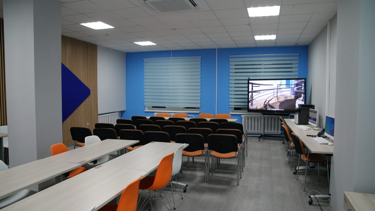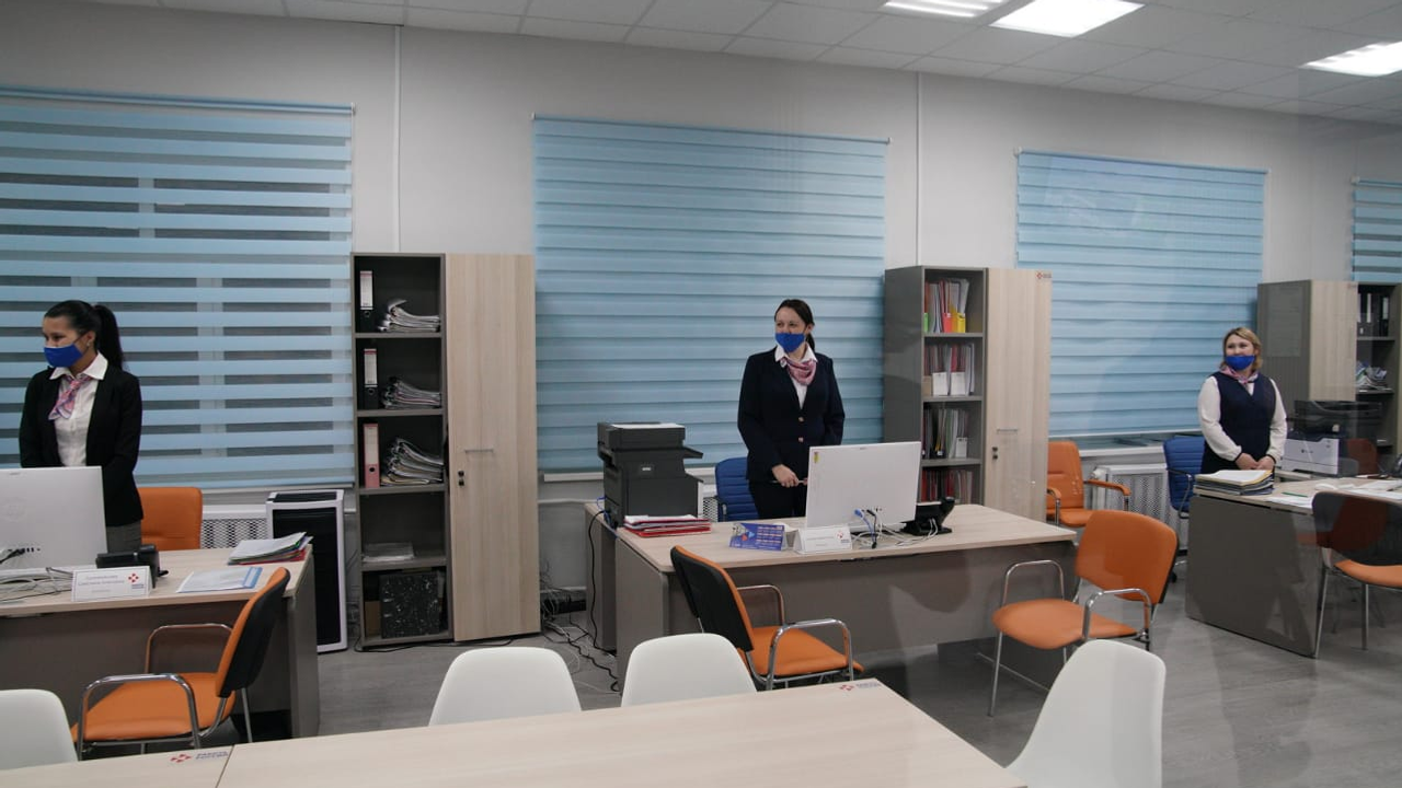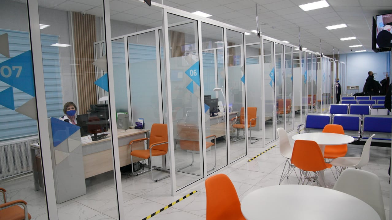 Здесь установлены большие экраны по всему центру, они нужны для информирования, а также для работы системы электронной очереди. Для удобства посетителей поставили высокопроизводительное многофункциональное устройство, на котором можно копировать и сканировать документы. В центре появилась система электронной очереди. Стало удобнее управлять потоком посетителей, не создавать физических очередей, лучше контролировать процесс.