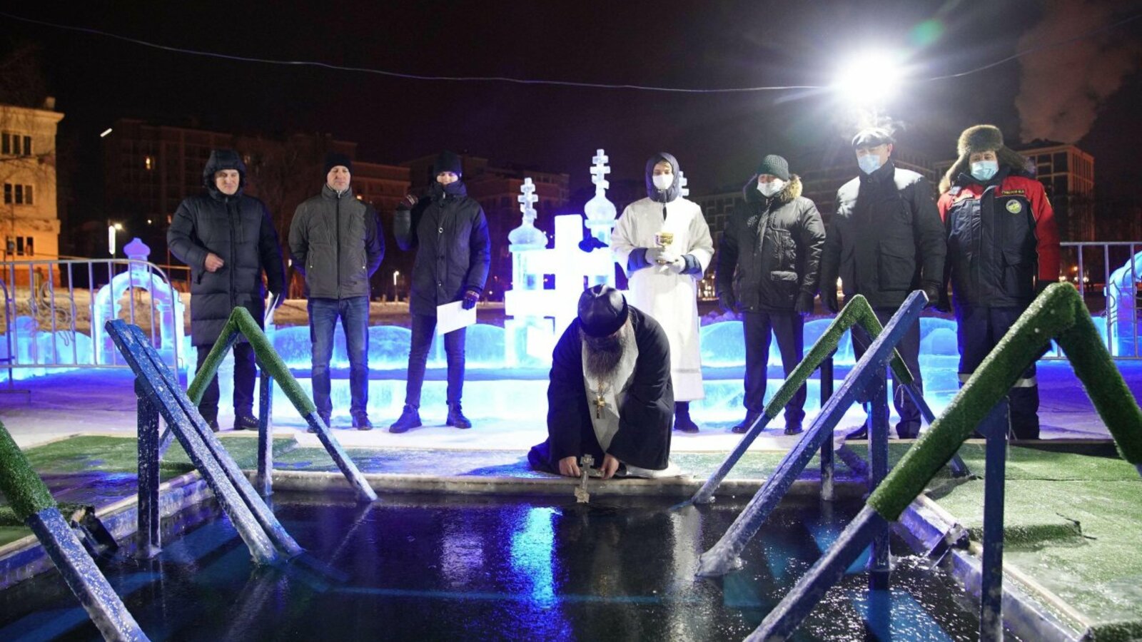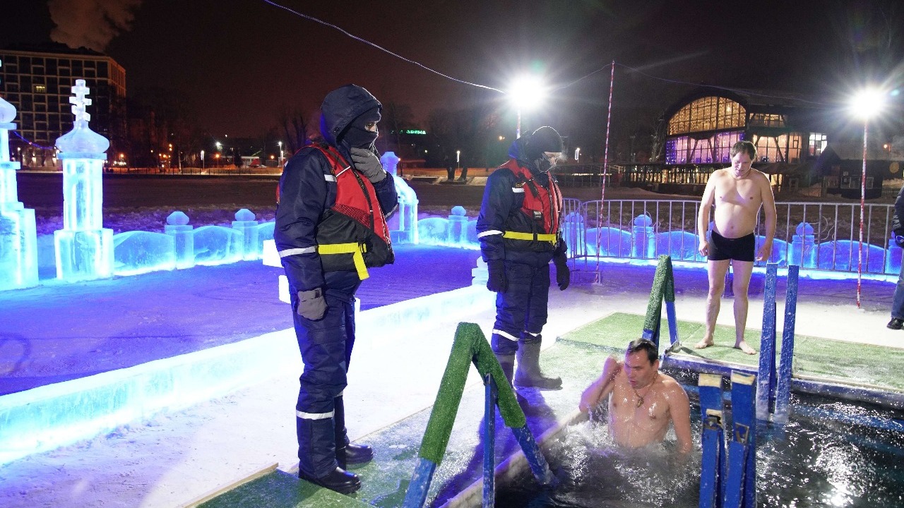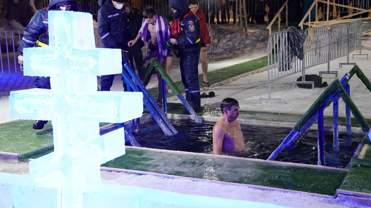 По всей республике ровно в полночь священники провели обряды освящения иорданей. После праздничной молитвы все желающие начали окунаться в купелях. Для удобства граждан оборудованы лестницы для спуска к воде, установлены пункты обогрева с горячим чаем.