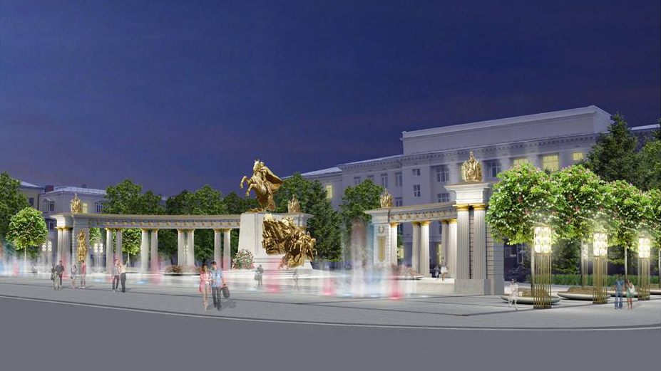 Деревья рубить не будут, свежевысаженные крупномеры будут перемещены, предлагаются некоторые улучшения, отметил архитектор. Перед памятником расположится фонтан, который выполняет важную декоративную функцию.