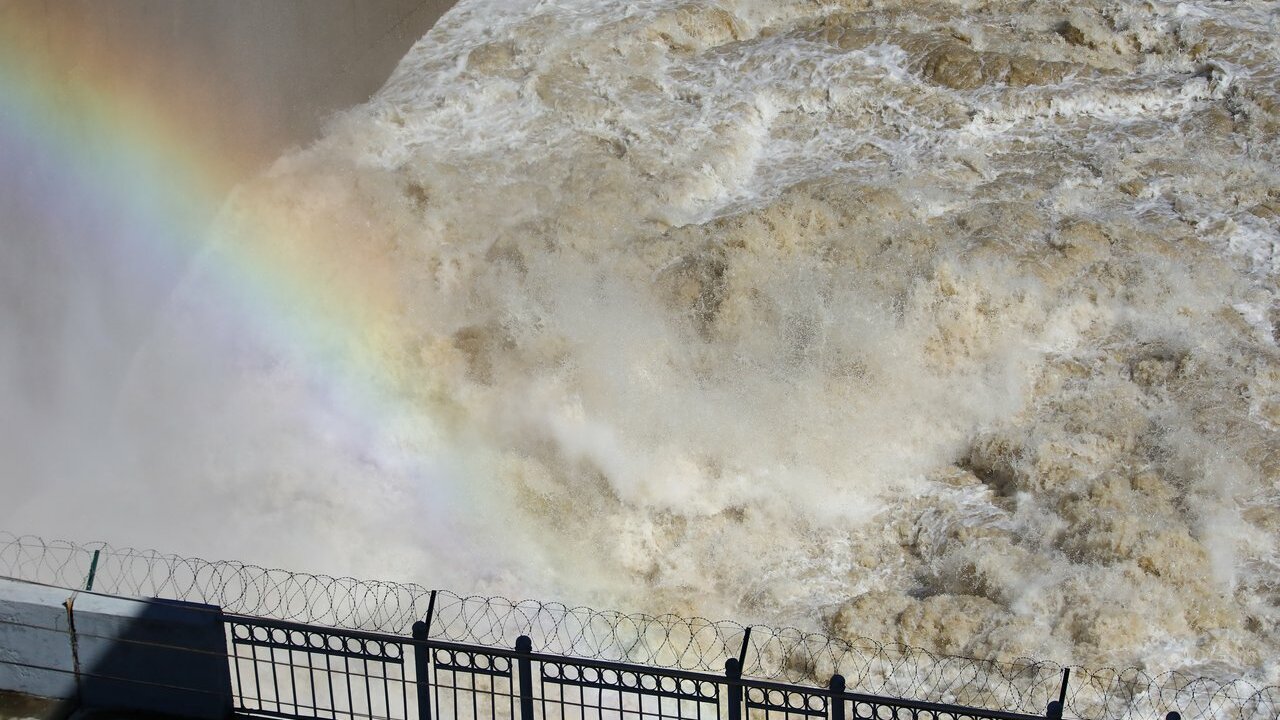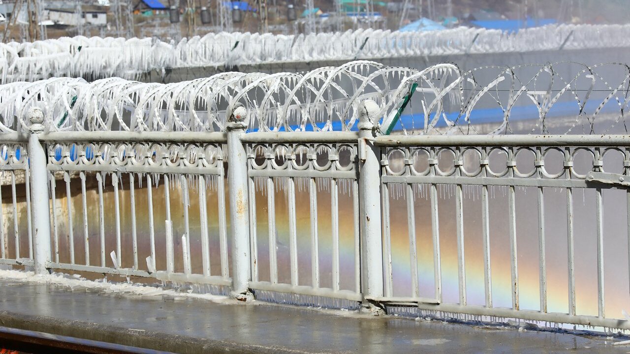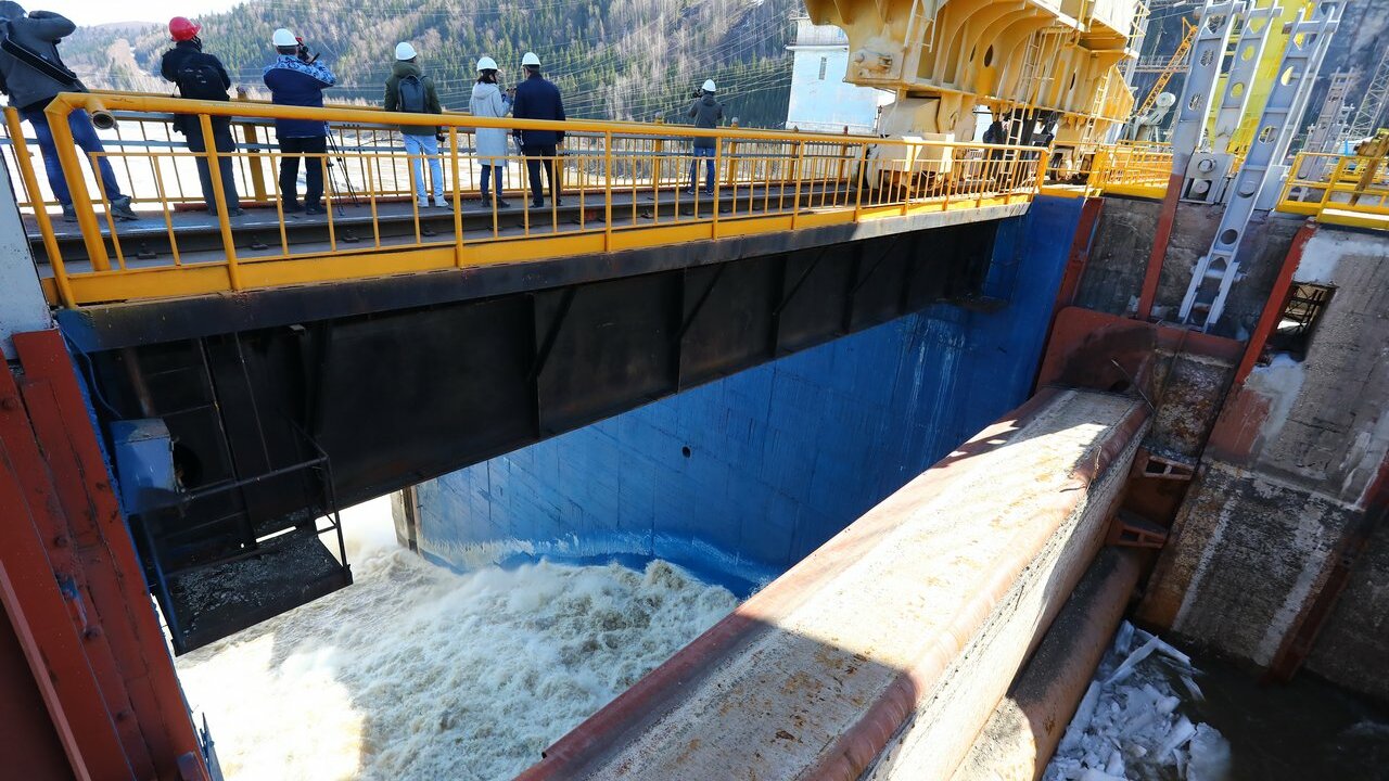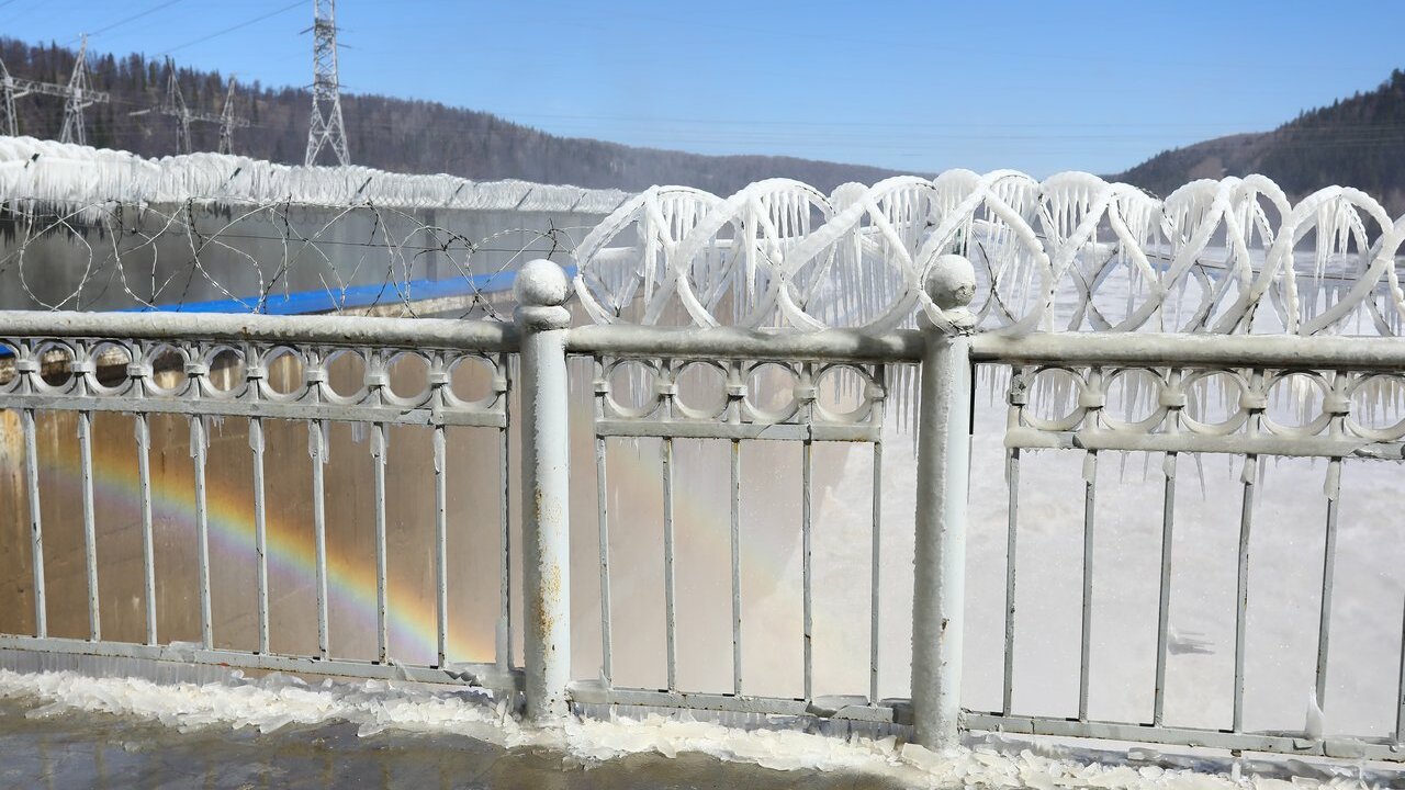 Вода сбрасывается постоянно – через плотину уходит чуть больше 2000 кубометров в секунду, из них 800 кубометров проходит через гидротурбины, более тысячи – через паводковые водосливы. Сброс воды – зрелищный процесс. Стоя на дребезжащем мостике, ощущаешь всю мощь стихии, вода бурным потоком вырывается из преграды и стремительно несется по течению. Смотришь на этот яростный поток, и становится немного страшно: а вдруг вода окажется сильнее построенной еще в советские времена плотины. Плюсом для участников «экскурсии» стала яркая радуга на фоне коричневой воды и обледеневшей проволоки.