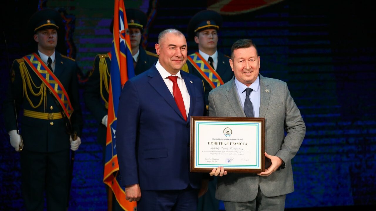 Вице-премьер правительства Башкирии Ирек Сагитов поздравил присутствующих в зале с профессиональным праздником и зачитал приветственный адрес Главы РБ Радия Хабирова.