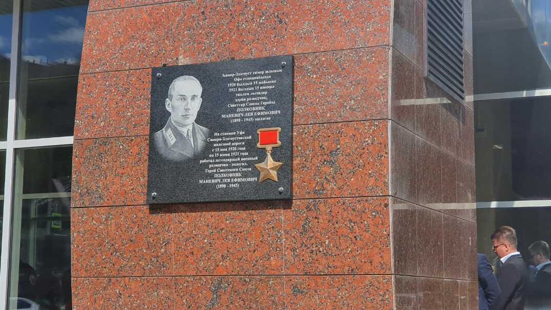 Сегодня, 6 мая, на железнодорожном вокзале Уфы состоялось торжественное открытие мемориальной доски военному разведчику, Герою Советского Союза полковнику Льву Маневичу.