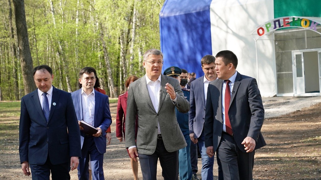 Рабочая поездка Главы Башкортостана Радия Хабирова в Илишевский район началась с ознакомления с ходом реконструкции детского оздоровительного лагеря «Орленок», который располагается близ села Ашманово.