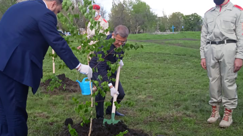 Радий Хабиров и члены делегации республики возложили цветы к памятнику башкирским конникам и приняли участие в посадке деревьев в одноимённом сквере.