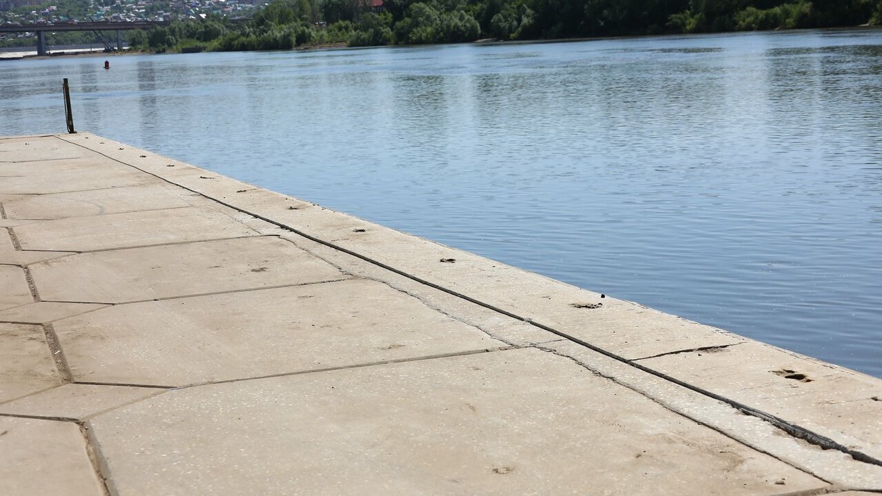 Деревянный причал вода «потрепала»: местами торчат деревяшки, зияют дыры, вмятины. Сюда приходят покататься на теплоходе уфимцы и гости столицы, а тут такое.