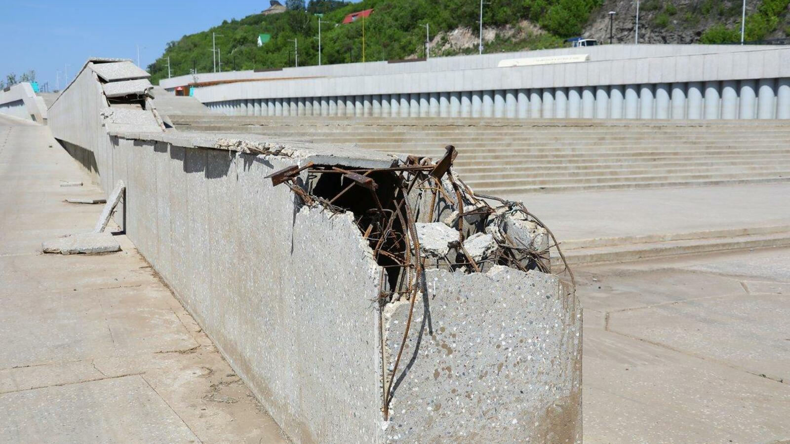 «Информационно-аналитическое управление – пресс-служба администрации Уфы сообщает следующее. В период весеннего ледохода 2021 года произошло разрушение парапета вдоль лестничного схода пешеходной зоны на отметке 86-84. Данная конструкция была выполнена в соответствии с проектной документацией, прошедшей государственную экспертизу и имеющей положительное заключение. Данная конструкция выполнена из монолитного железобетона и облицована декоративными плитами. Разрушение декоративных плит произошло ввиду ледового затора (нагромождение льда) и механического воздействия. Подрядная организация данный участок парапета восстановит. Конструкция парапета дополнительно будет усилена во избежание повторного разрушения», — прояснили ситуацию в мэрии столицы.
