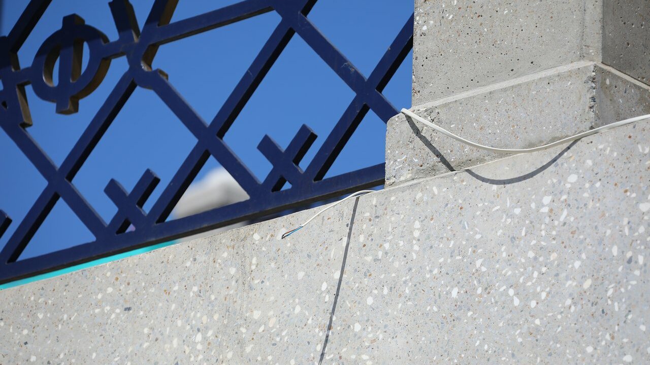 Плиты на парапете напротив также сместились, конструкция выглядит шатко и неприглядно.