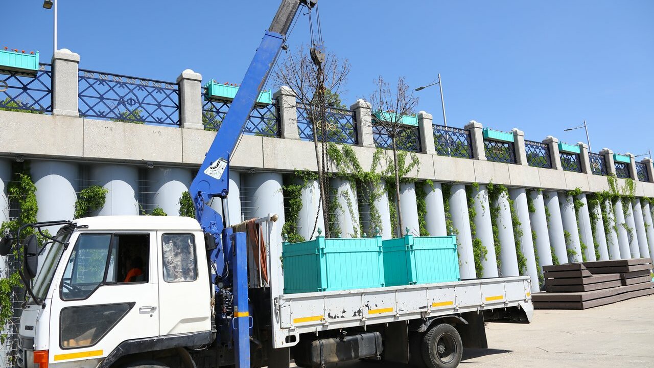 Деревоподобный кустарник – ирга – растет в кадках на отрезке от кафе «Рудольф Нуреев» и до автомобильного моста. В ящиках метр на метр растут кустарники – спирея японская – отличный выбор для наших условий. В синих ящиках растут ярко-оранжевые бархатцы (тагетесы): ежедневно на их полив работники нашей подрядной организации тратят от 9 до 12 часов: ездят на машине, поливают.