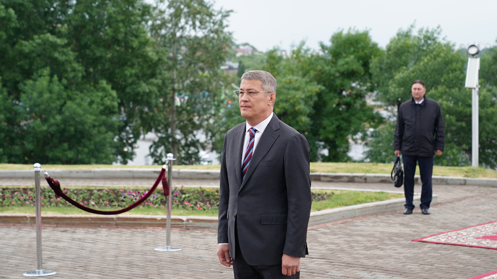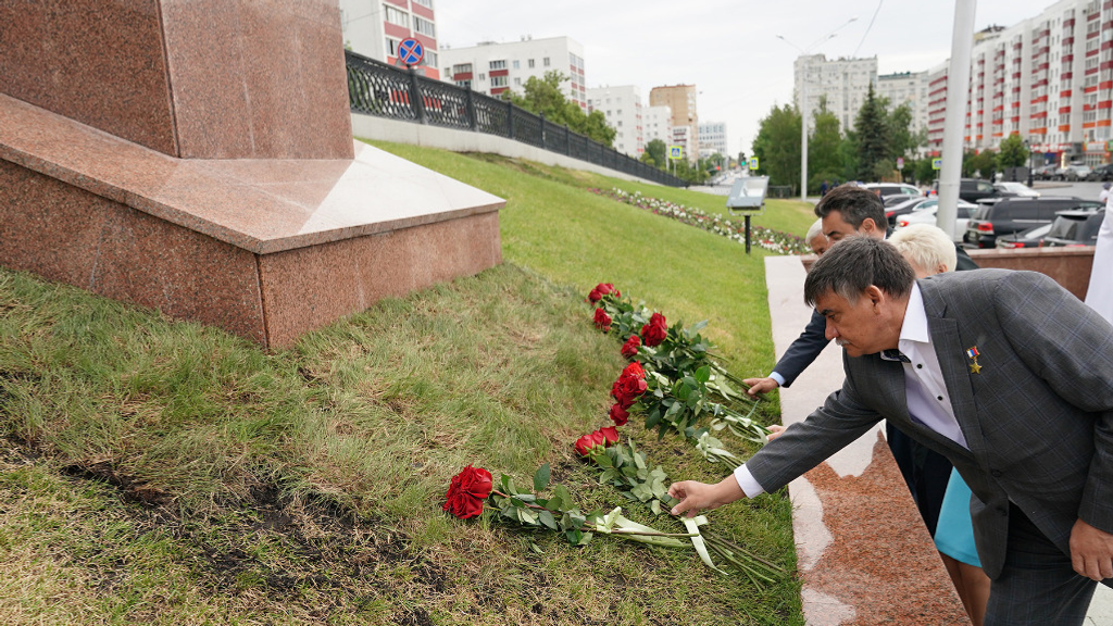 В День России руководитель республики возложил живые цветы к Монументу Дружбы, возведённому в честь 400-летия добровольного вхождения Башкирии в состав Русского государства.