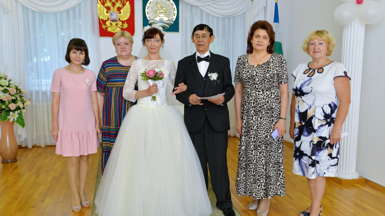 В Башкирии в городе Октябрьском сыграли свадьбу молодожены, познакомившиеся в доме престарелых. Жениху — 72 года, невеста — почти на 40 лет моложе.