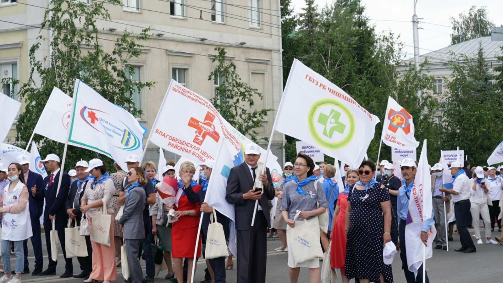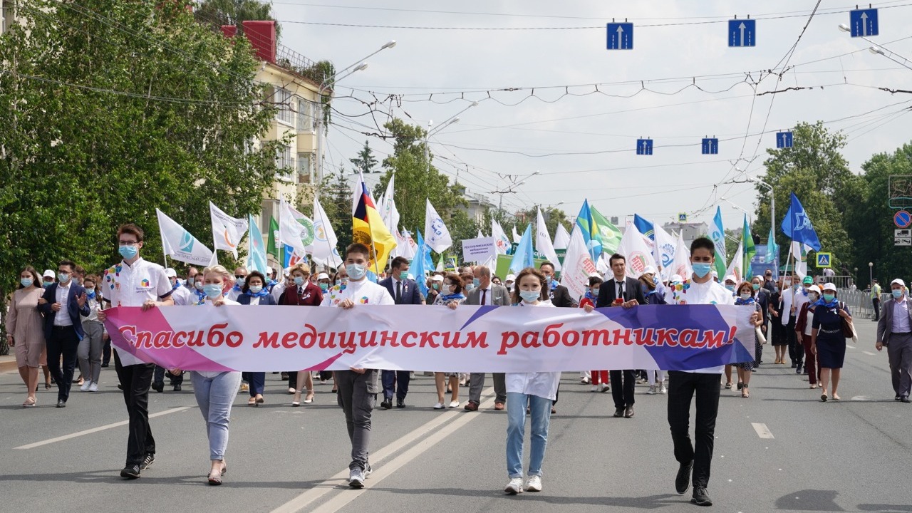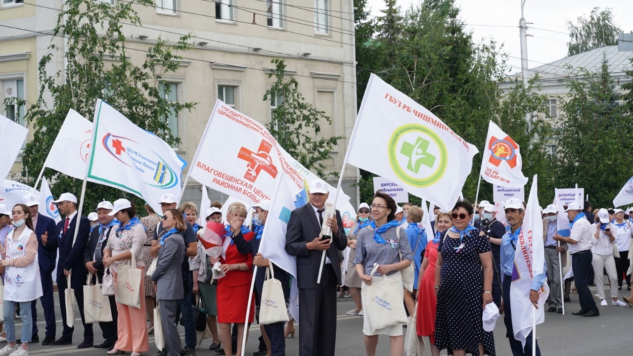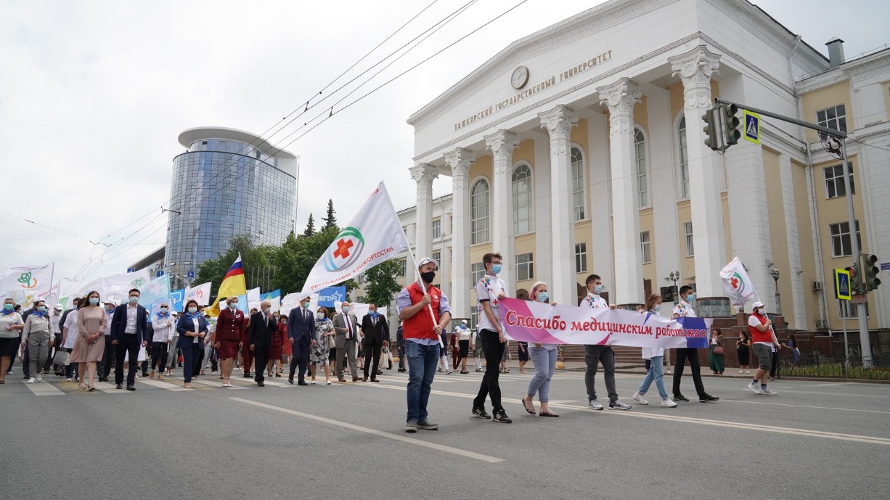 Сегодня в Уфе в рамках праздничных мероприятий, посвященных Дню медика, второй раз прошел Парад медицинских работников. В нем приняли участие более 650 медиков всех медицинских округов республики. Колонна врачей прошла по улице Заки Валиди от Башдрамтеатра до Конгресс-холла «Торатау». Шествие было организовано с соблюдением всех санитарно-эпидемиологических требований.