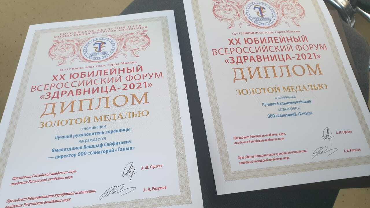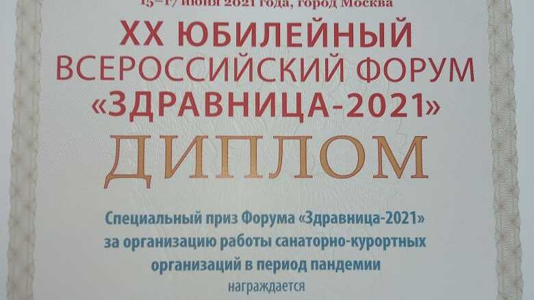 На крупнейшем санаторно-курортном форуме «Здравница-2021» руководство Республики Башкортостан удостоено специального приза за организацию работы санаторно-курортных организаций в период пандемии. Памятный кубок и диплом были вручены президентом Национальной курортной ассоциации, академиком РАН Александром Разумовым.