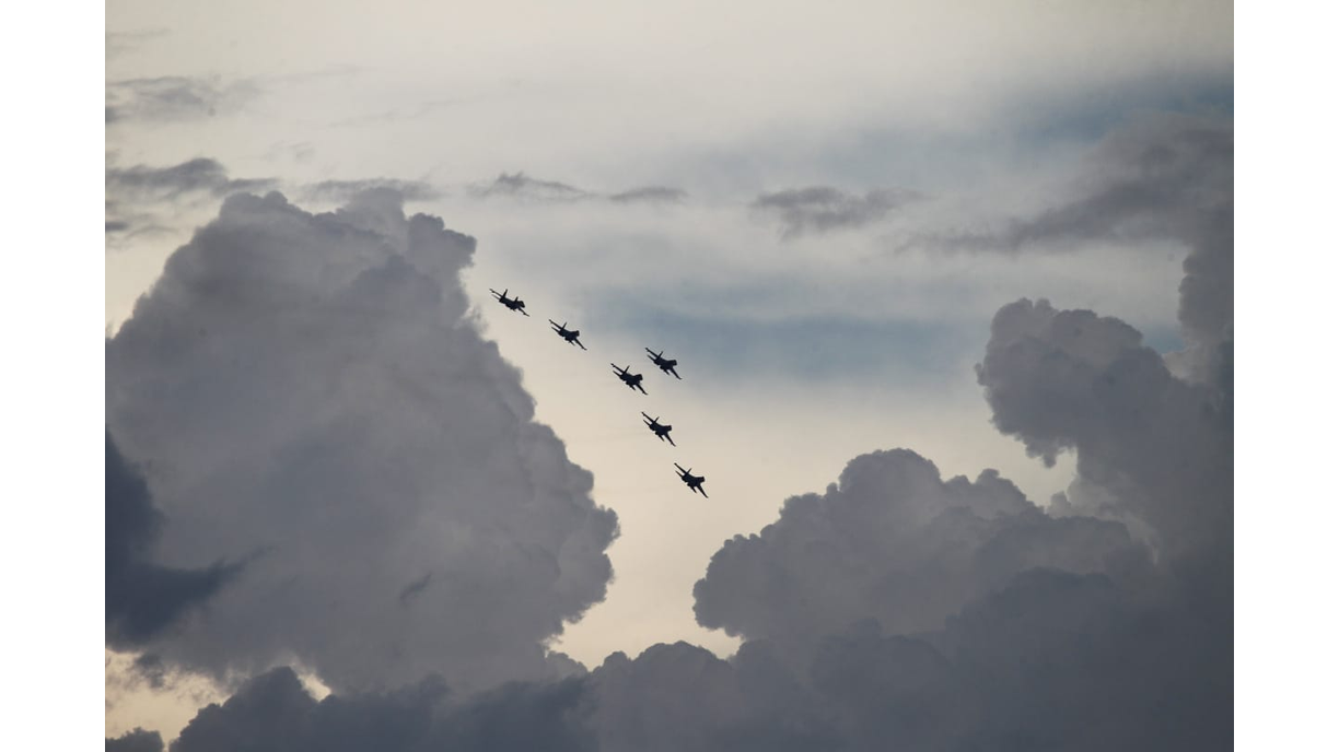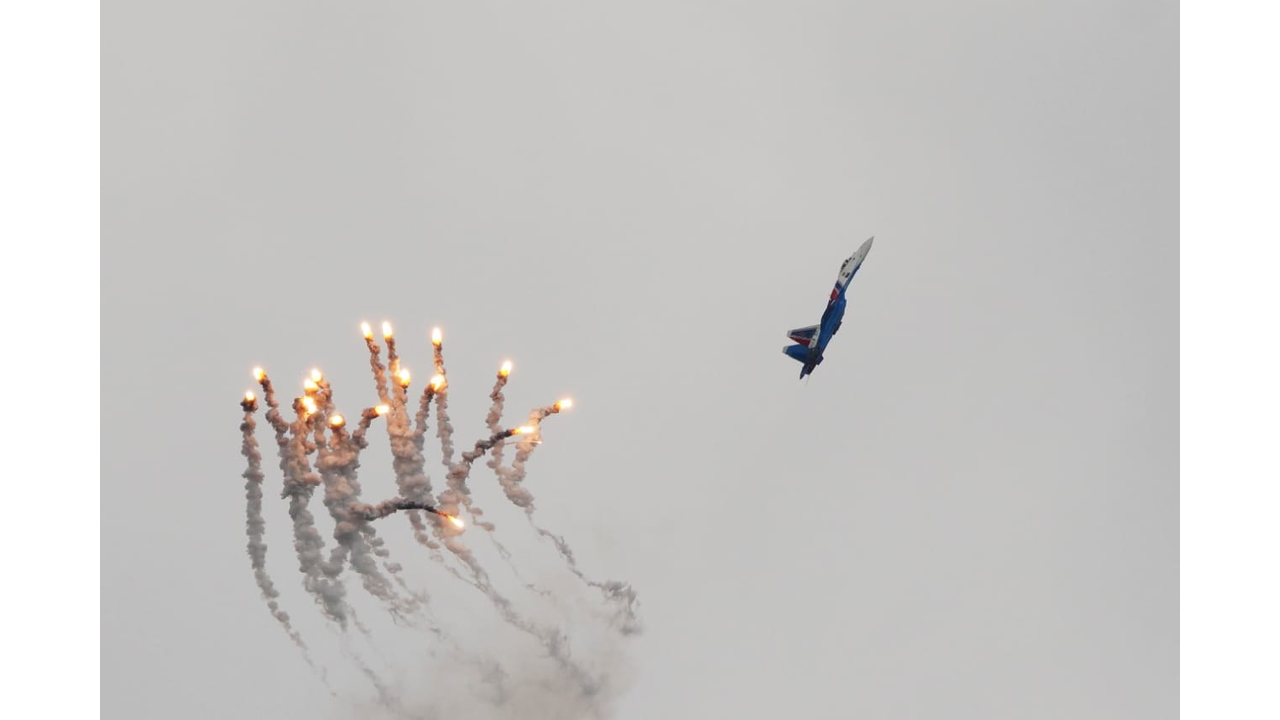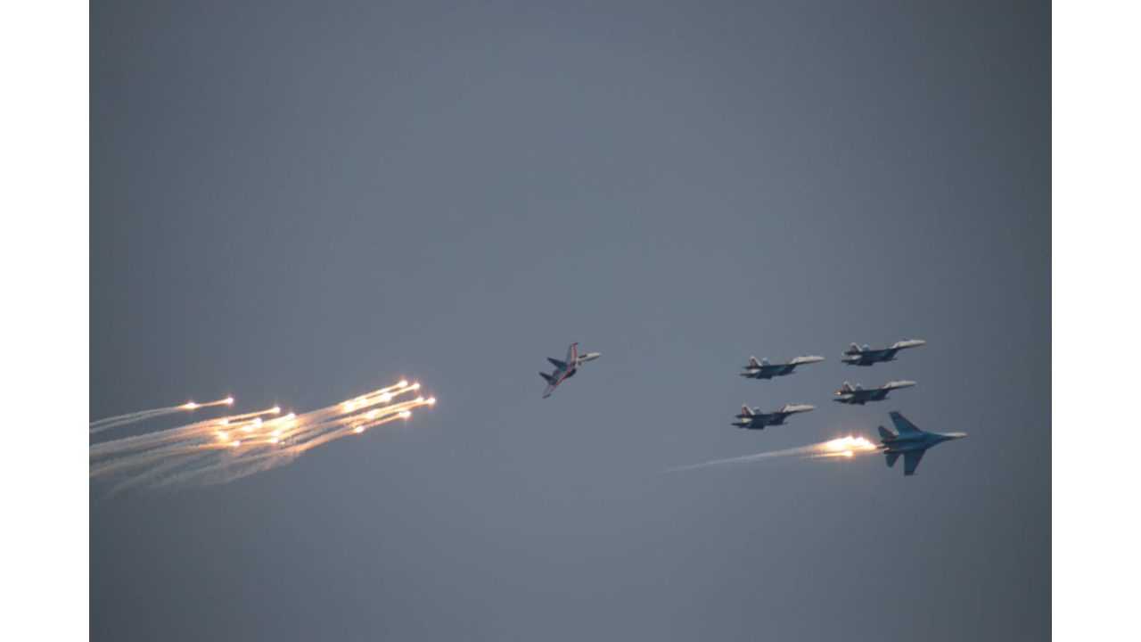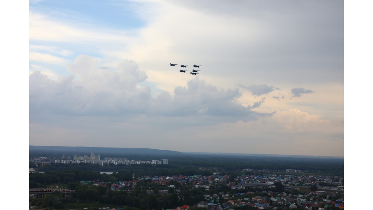Демонстрационные полеты выполнили два Су-30СМ и четыре Су-35С. Наблюдать за шоу на набережной реки Белой, в парке «Ватан» и на уфимском Телецентре собрались тысячи горожан. Петля Нестерова, бочка, колокол, фонтан, роспуск тюльпана - эти сложнейшие элементы асы выполнили на одном дыхании.