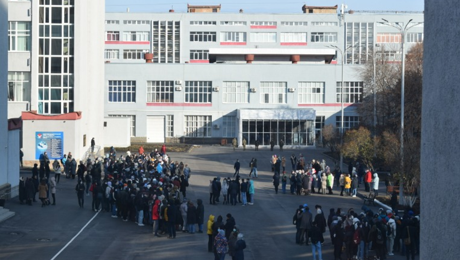 По легенде группа вооруженных лиц проникла на территорию 9 учебного корпуса университета и захватила в заложники несколько человек. По сигналу тревоги все находящиеся в этом и близлежащих зданиях студенты, преподаватели и сотрудники были срочно эвакуированы на безопасную территорию.