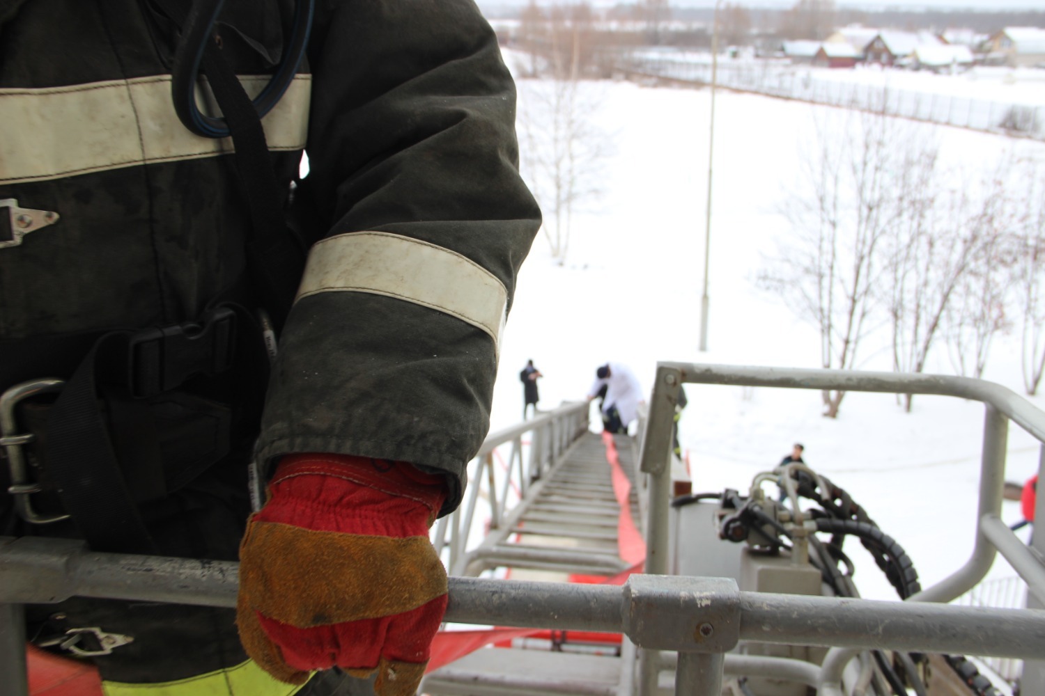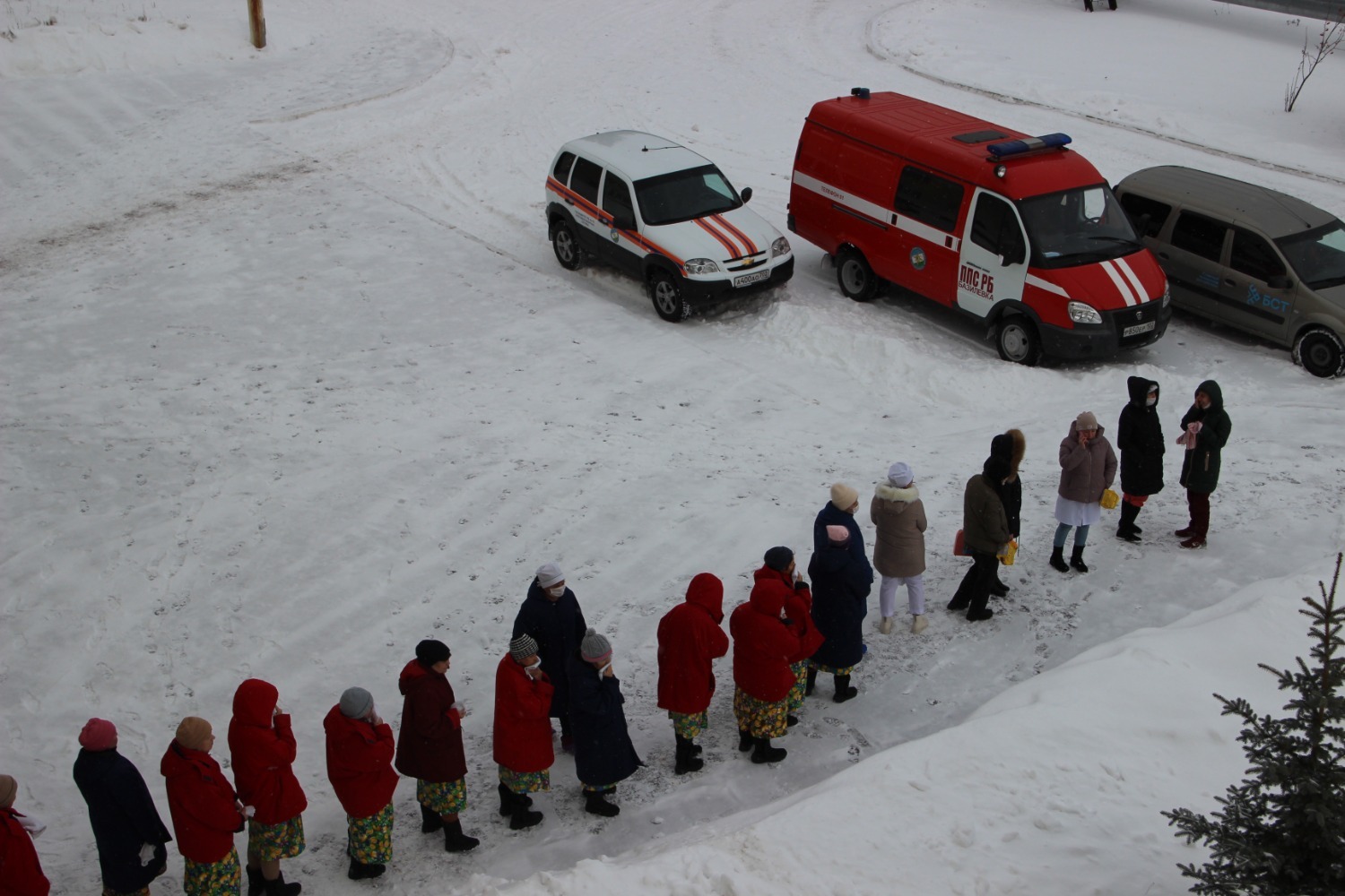 На улице у больничного корпуса столпились с вещами первой необходимости эвакуированные сотрудники медучреждения. Между тем одна машина с лестницей направилась к окнам больницы, где просил о помощи попавший в «огненную ловушку» работник. Вторая спецмашина остановилась у крыльца – сотрудники звена газодымозащитной службы бросились внутрь психбольницы, ведь помощи ждала надышавшаяся угарным газом молодая пациентка. За происходящим из окон соседнего корпуса наблюдали пациенты – кто-то с неподдельным интересом и восторгом, а кто-то с испугом.