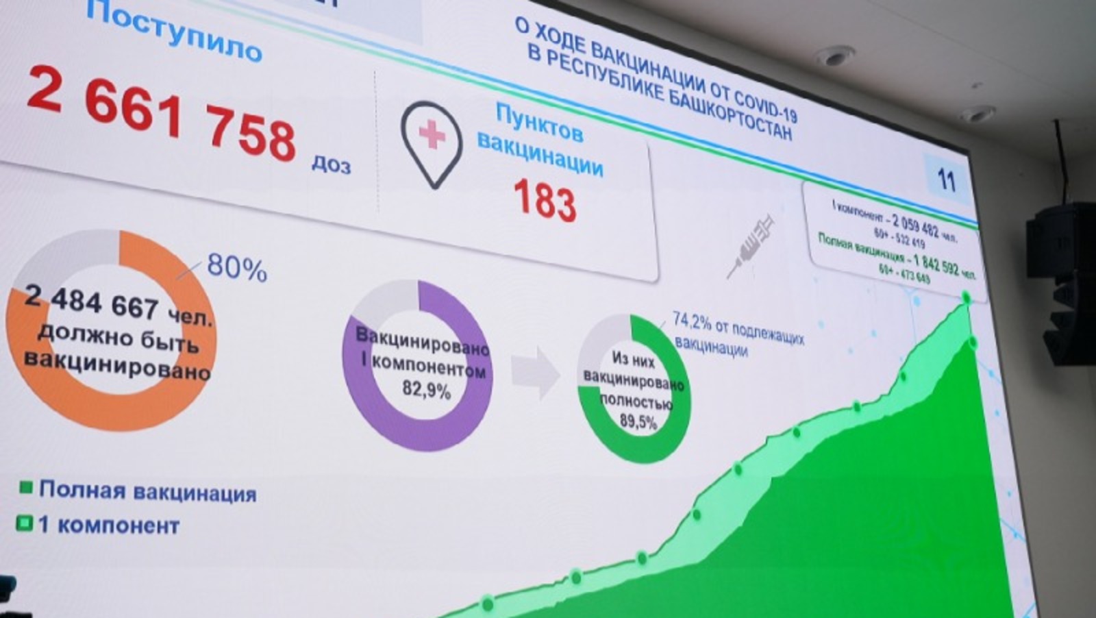 По данным на 9 декабря, первым компонентом вакцины от коронавируса привиты 2 059 482 человека. Полностью завершили вакцинацию 1 842 592 человека. Это соответственно 82,9 и 74,2 процента подлежащего вакцинации населения.