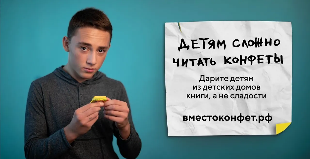 Всё началось с фотографии списка книг, о которых мечтал воспитанник уфимского Детского дома № 1 Егор. Часто люди, желая порадовать детей, собирают для них посылки из конфет и сладостей. Цель этой акции рассказать, что, помимо конфет, дети нуждаются в книгах и других образовательных и социально важных вещах. Таких мальчишек и девчонок, как Егор, много, и о том, какие книги, помощь каких специалистов и репетиторов они хотят получить в подарок, можно узнать на сайте ВМЕСТОКОНФЕТ.РФ.