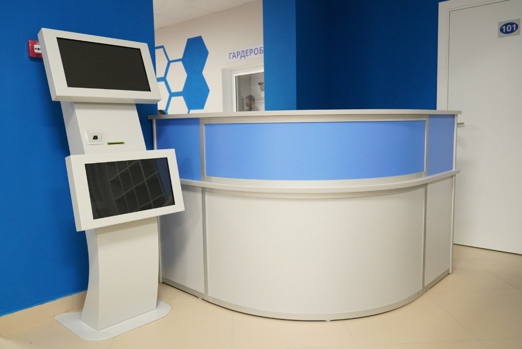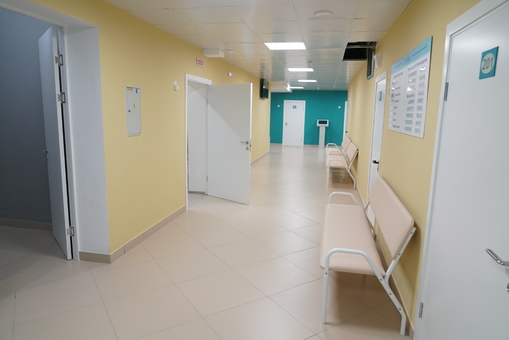 Новое здание соединили со старым на уровне второго этажа и обустроили тёплый переход. Также в медучреждении установили лифт и подъёмник.