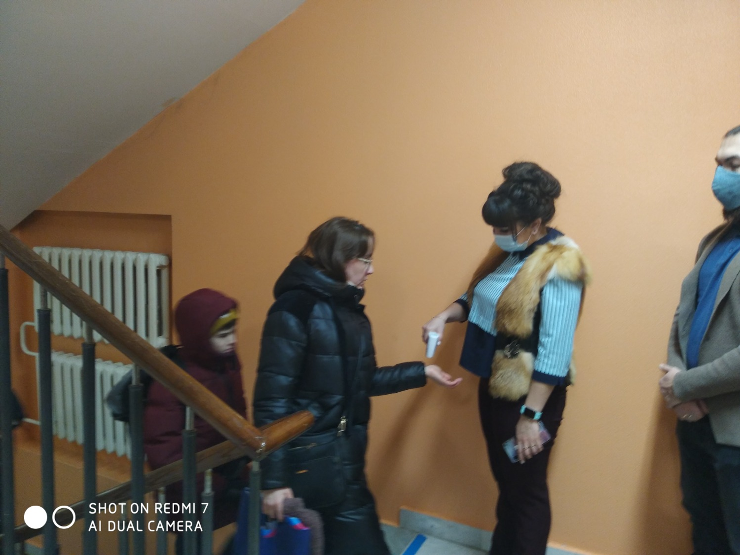 И это не просто дежурная вежливость, а прежде всего исполнение должностных обязанностей. Каждое утро для более чем 600 учащихся школы начинается с краткого опроса и, конечно, с замера температуры.