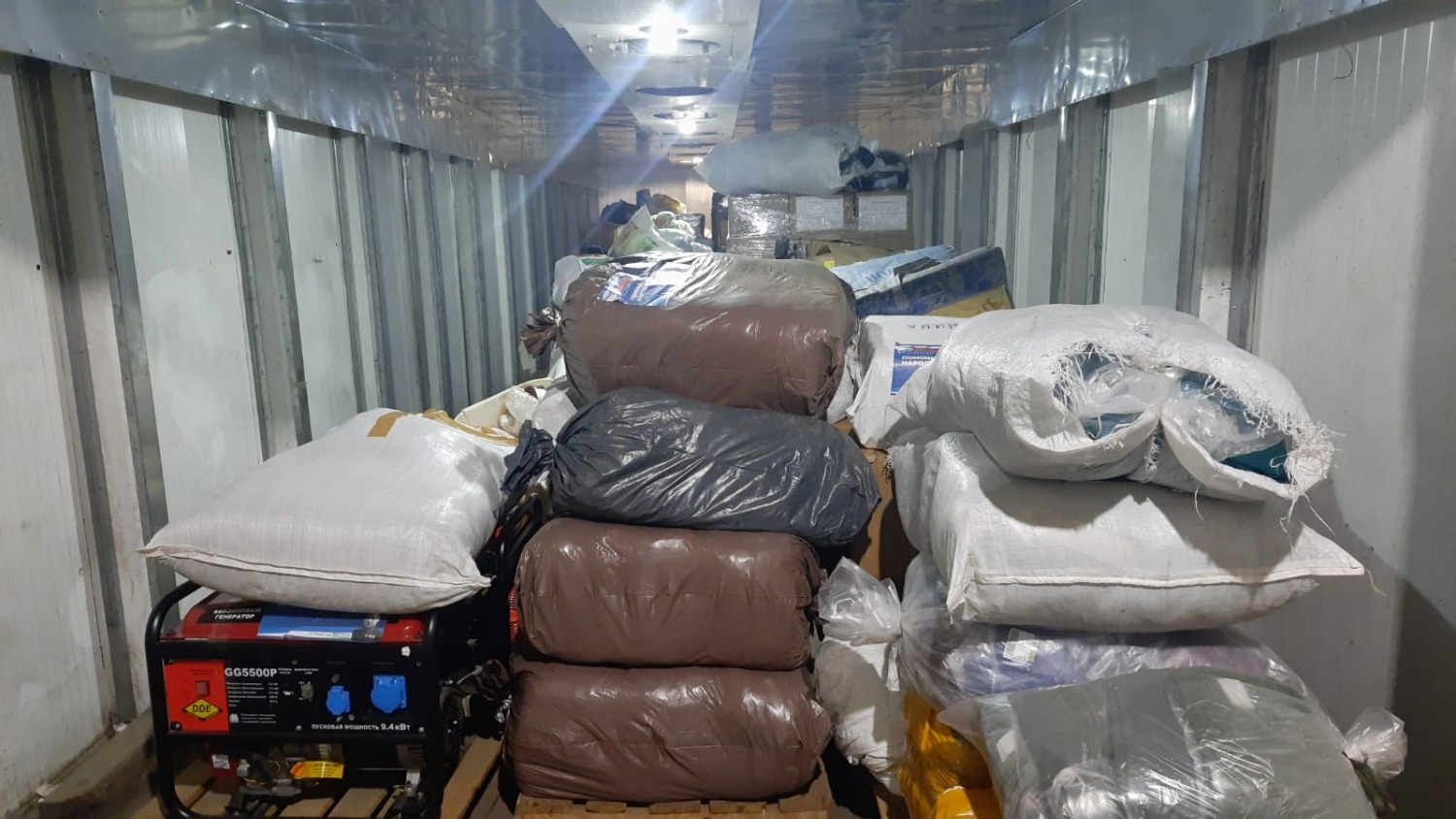 Автопоезда привезли продукты питания республиканских производителей: муку, сахар, растительное масло, мясные консервы, бакалею. В коробках и пакетах — тёплые вещи, продукты питания, постельные принадлежности, одежда, предметы личной гигиены. Есть и детское питание.