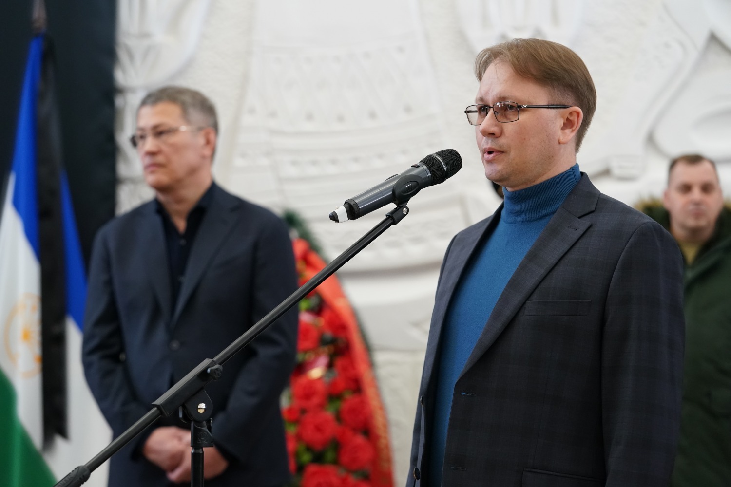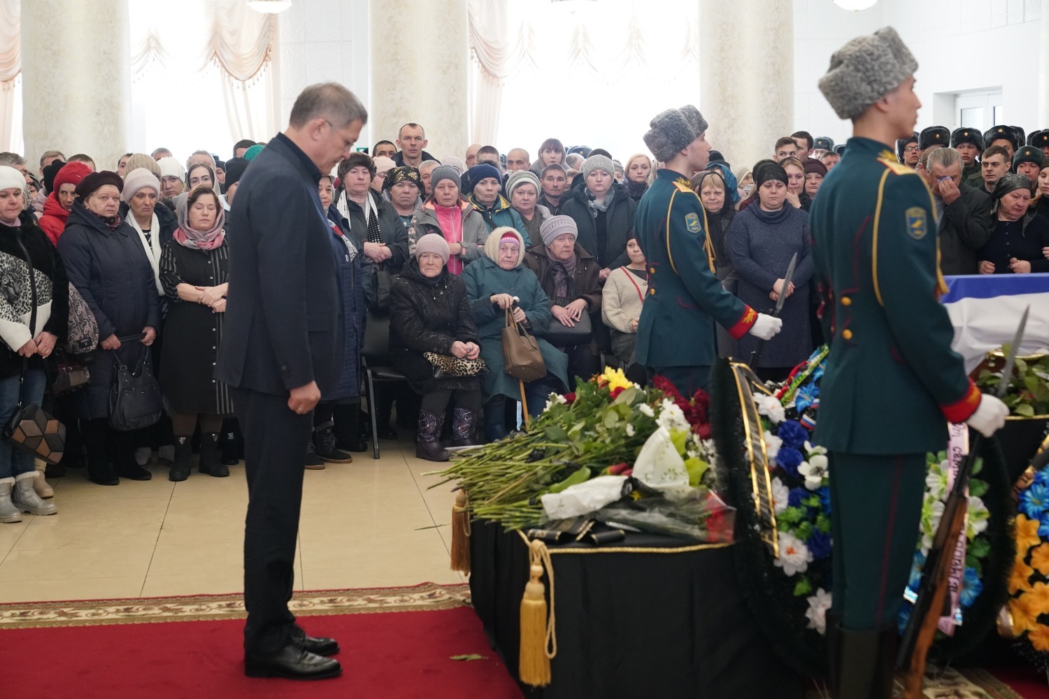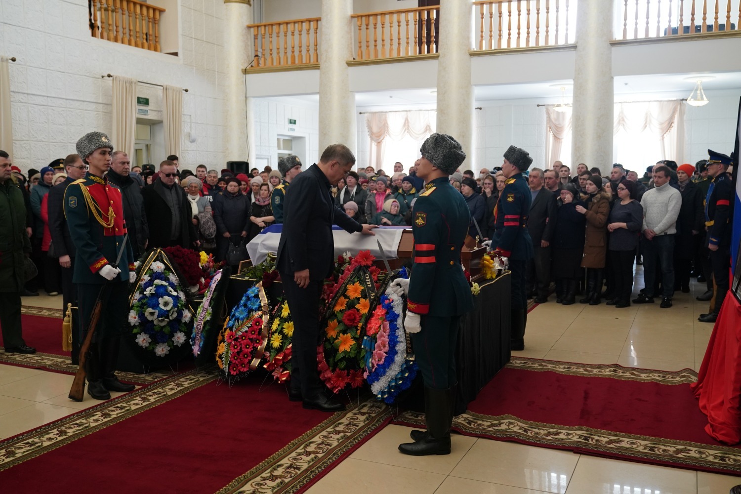 Церемония прощания с Александром Потаповым прошла в кумертауском Дворце культуры угольщиков. Здесь собрались его родные, близкие и друзья. Выразить соболезнования приехал и Глава Башкирии Радий Хабиров.