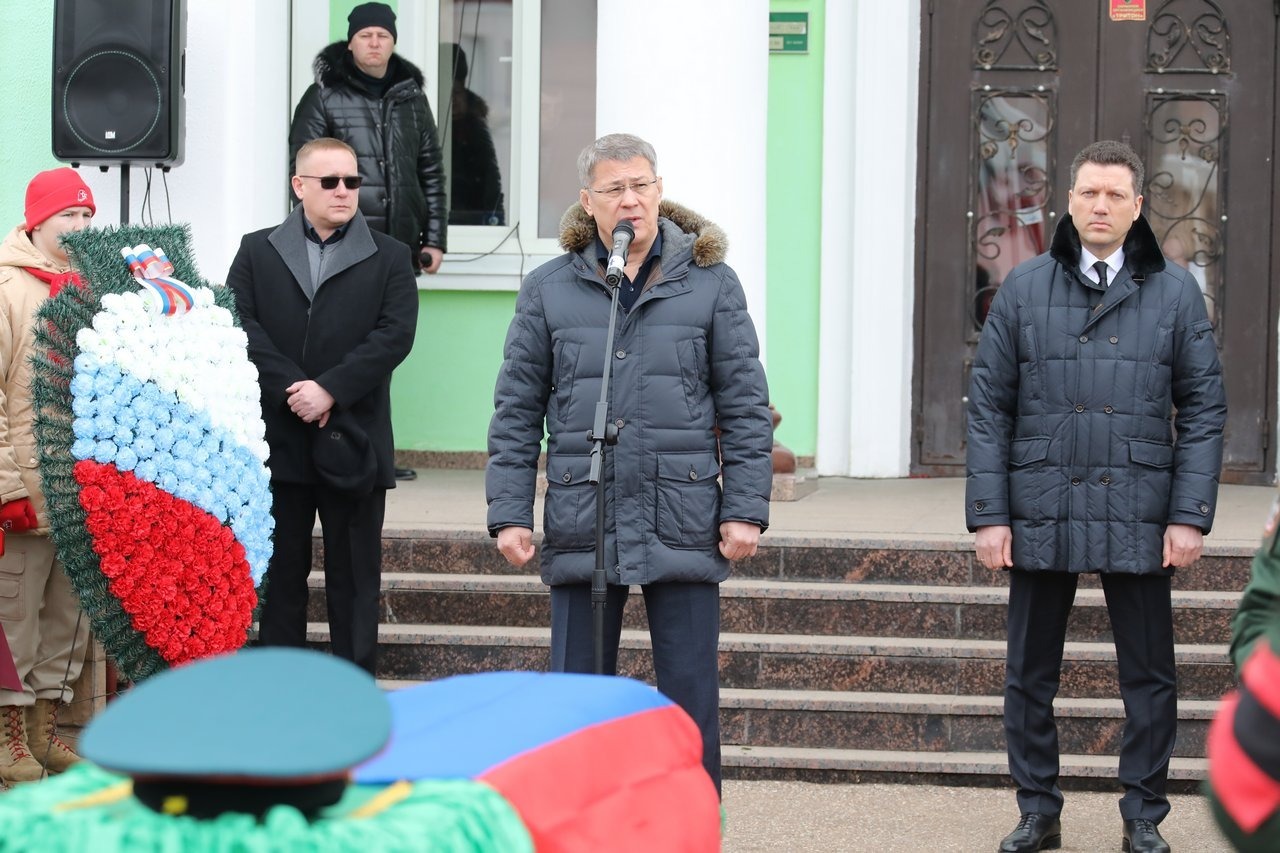 «Конечно, с очень тяжелым сердцем мы все собрались здесь, на земле Кумертау, чтобы проводить в последний путь одного из достойнейших сынов Башкортостана — воина, героя. И в то же время мы не просто провожаем его в последний путь, мы хотим поблагодарить и поклониться ему. В лице Александра поклониться тысячам наших парней, которые защищают нашу страну, защищают нас, выполняя свой воинский долг. Я благодарю родителей за то, что воспитали такого достойного человека, достойного воина. Мы не оставим родных и близких в этой беде одних. Спи спокойно, герой, спи спокойно. Вечная тебе память, вечная тебе слава», — сказал Радий Хабиров.