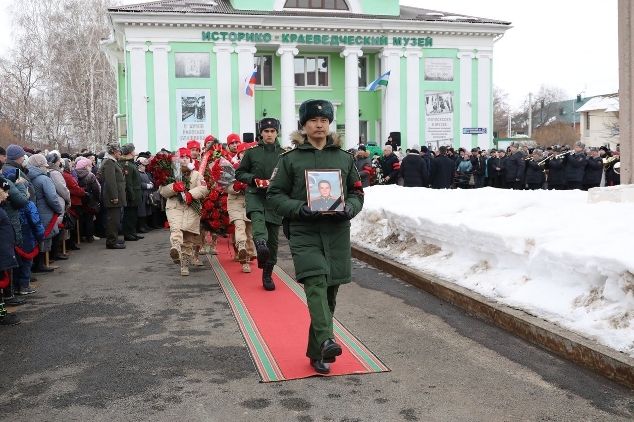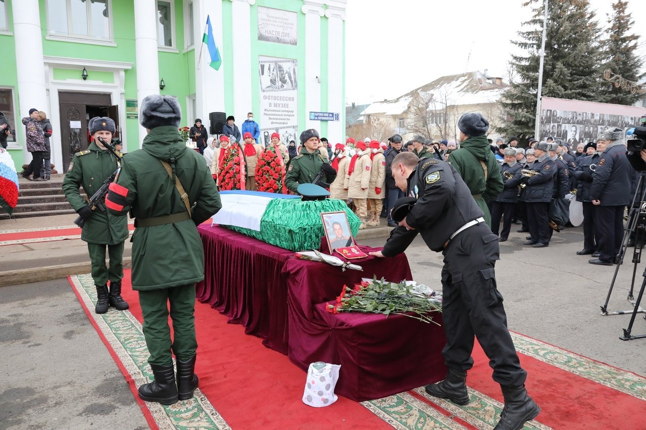 Прощание с лейтенантом Линаром Гариповым состоялось в Салавате на территории историко-краеведческого музея.