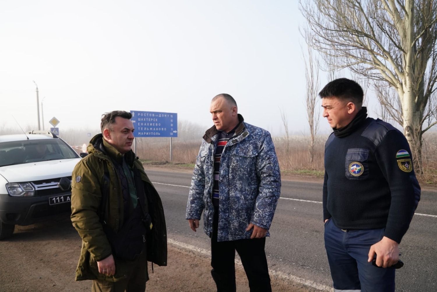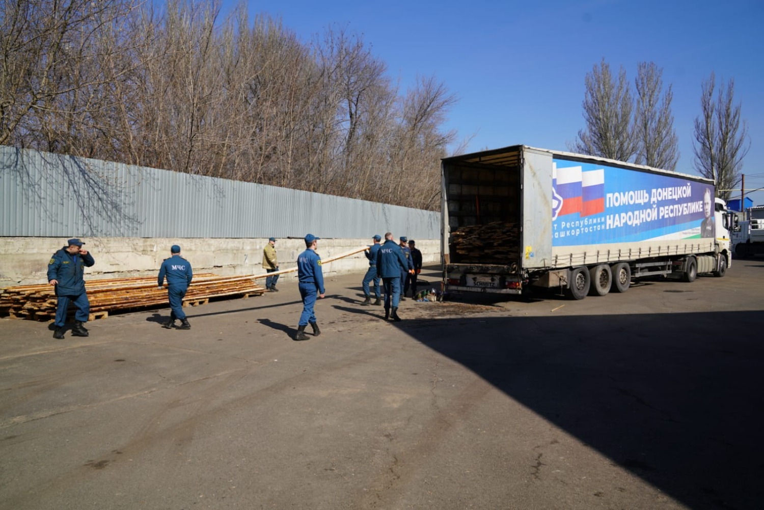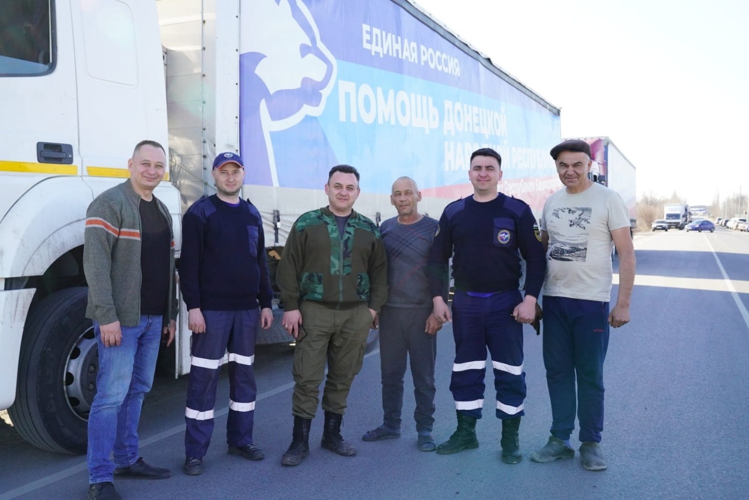 Там к нашим автомобилям присоединился автомобиль «Урал» данного центра и мы направились в сторону российской границы. Пройдя необходимый таможенный контроль, в девять утра по уфимскому времени мы заехали на территорию Донецкой Народной Республики, где на одном из постов ГАИ нас встречали сотрудники МЧС ДНР, в сопровождении которых наша колонна отправилась в Донецк. По пути мы проехали города Иловайск и Макеевку, куда потихоньку возвращается мирная жизнь и, как нам рассказали наши сопровождающие, в ближайшие дни в республике, там, где есть возможность, приступят к весенне-полевым работам. Во время движения колонны по территории ДНР обратил внимание, что все автомобили, ехавшие навстречу, выезжали на обочину и уступали место для наших фур, многие водители приветствовали нас звуковыми сигналами, как и люди в Донецке, когда мы проезжали мимо них.