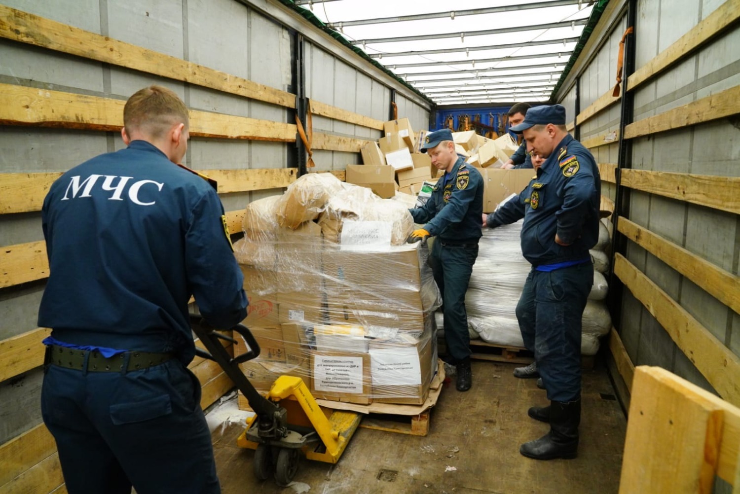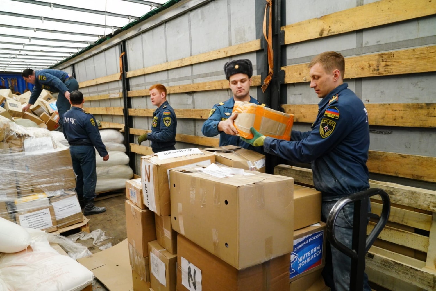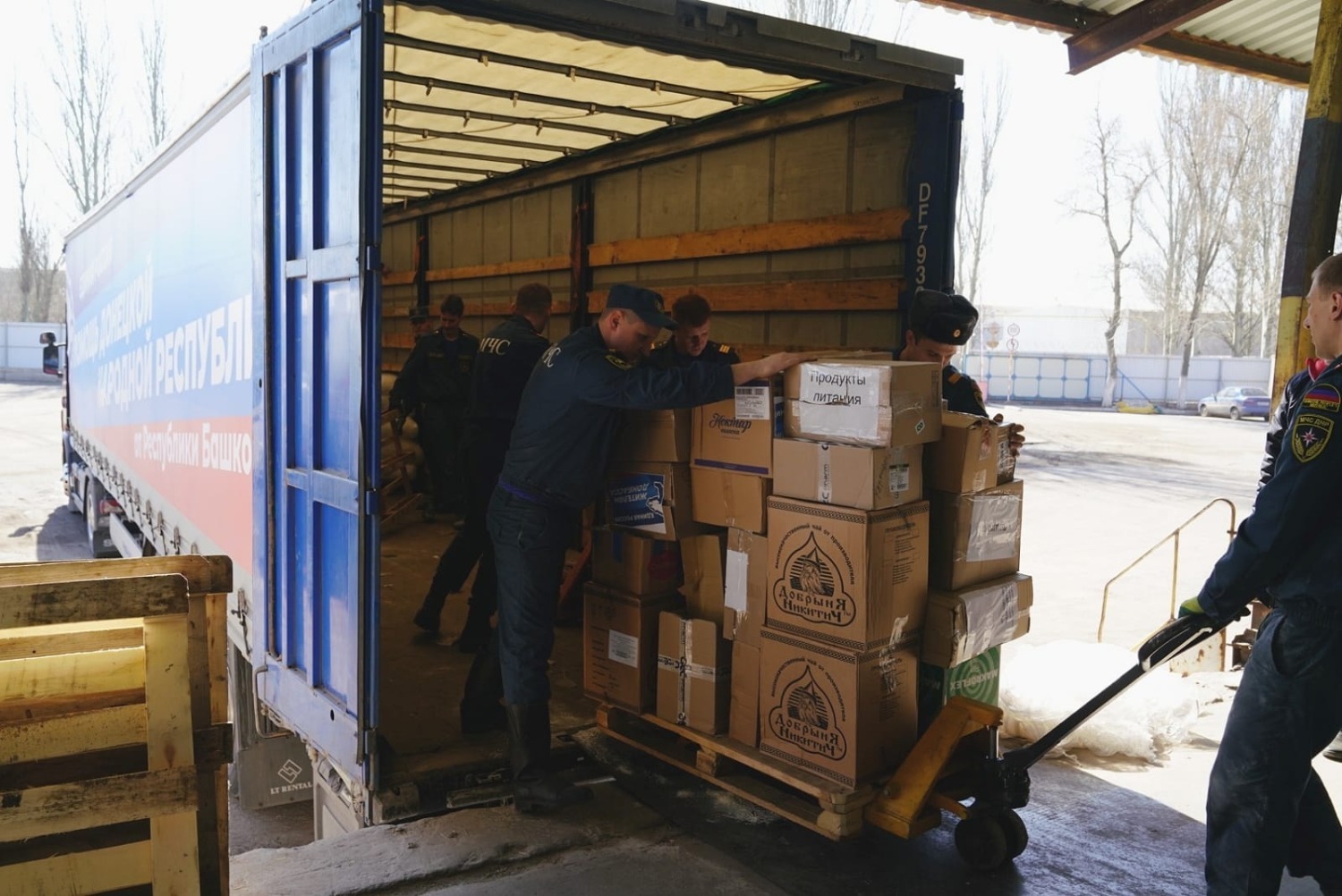 «Мы занимаемся приемом, учетом, распределением гуманитарной помощи. Наш департамент является рабочим органом госкомиссии по предупреждению и ликвидации чрезвычайных ситуаций и готовит все документы по распределению гуманитарки. Вы сейчас как раз находитесь в центре по хранению и распределению гуманитарной помощи, - рассказал нам директор департамента по работе с гуманитарным грузом и контроля восстановления объектов МЧС ДНР Валентин Гордиенко. - Ваша помощь неоценима, ваши представители с нами постоянно на связи, интересуются, что сейчас необходимо нашей республике, какая необходима номенклатура товаров, и все наши просьбы выполняются. Братскому народу Башкортостана огромная благодарность за то, что поддерживаете нас, нашу молодую республику, за вашу заботу и поддержку».
