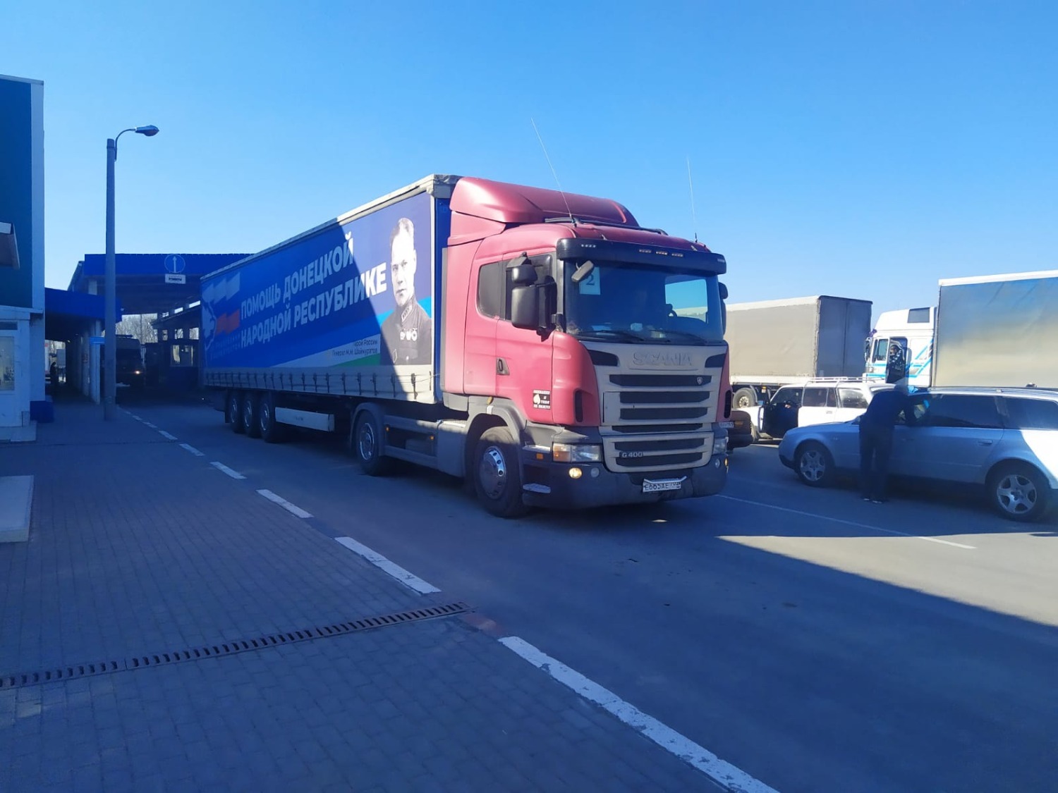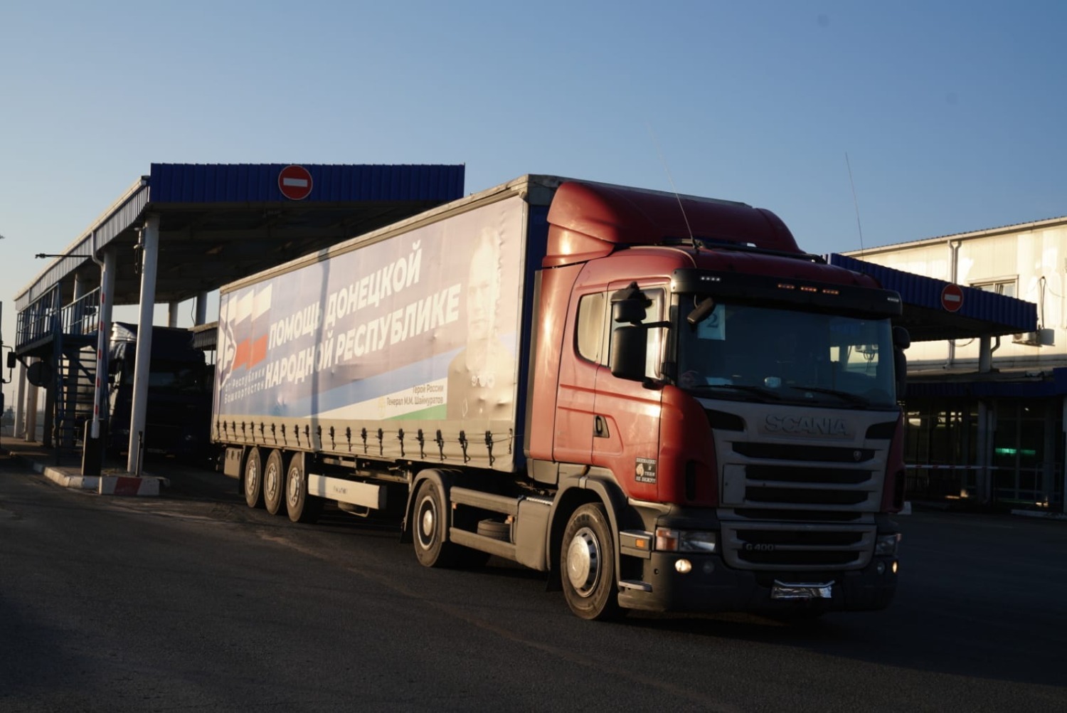 В данный момент наша колонна после разгрузки, попрощавшись с сотрудниками МЧС ДНР и подписав необходимые документы о доставке груза, благополучно вернулась на территорию России.