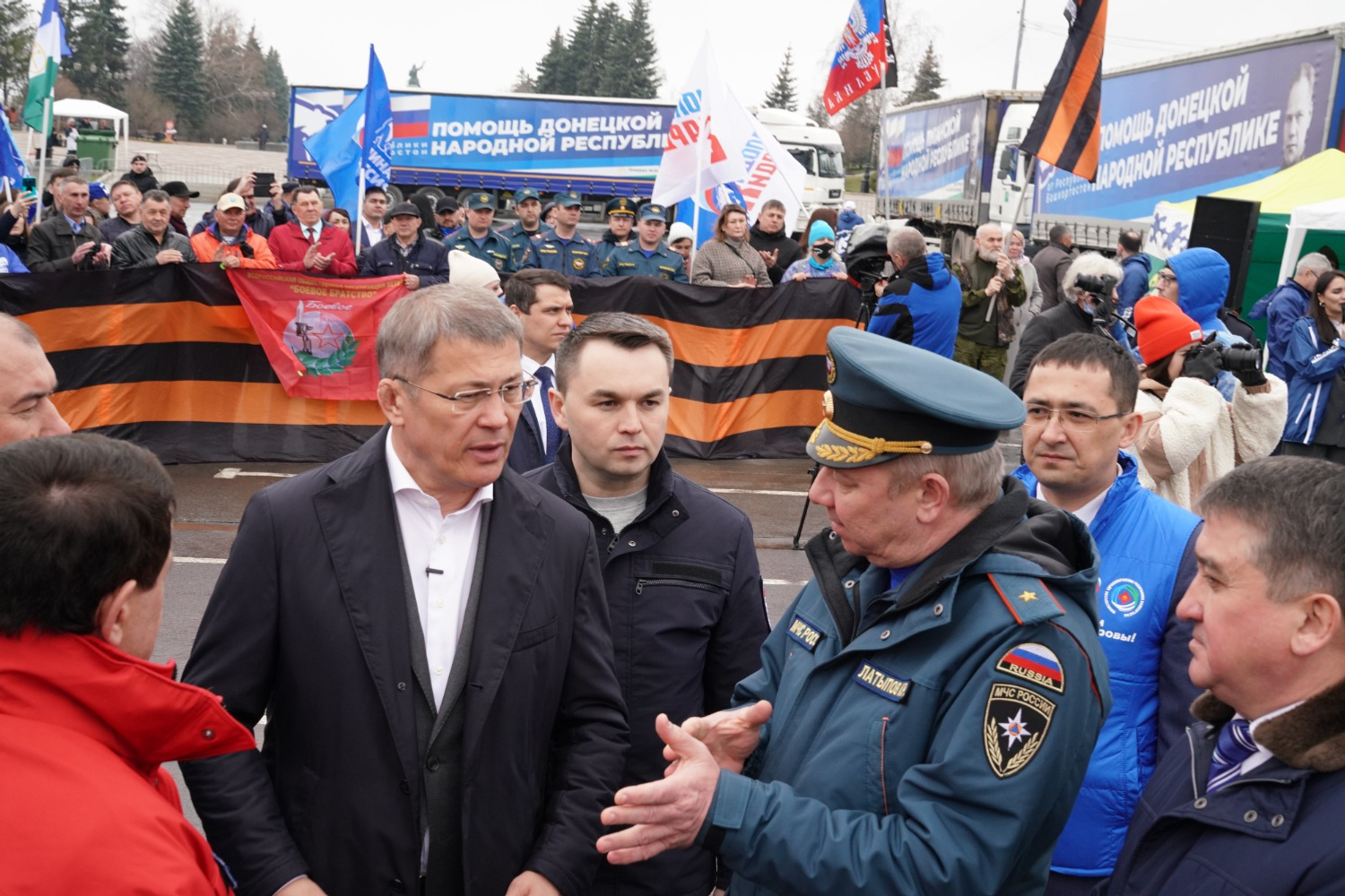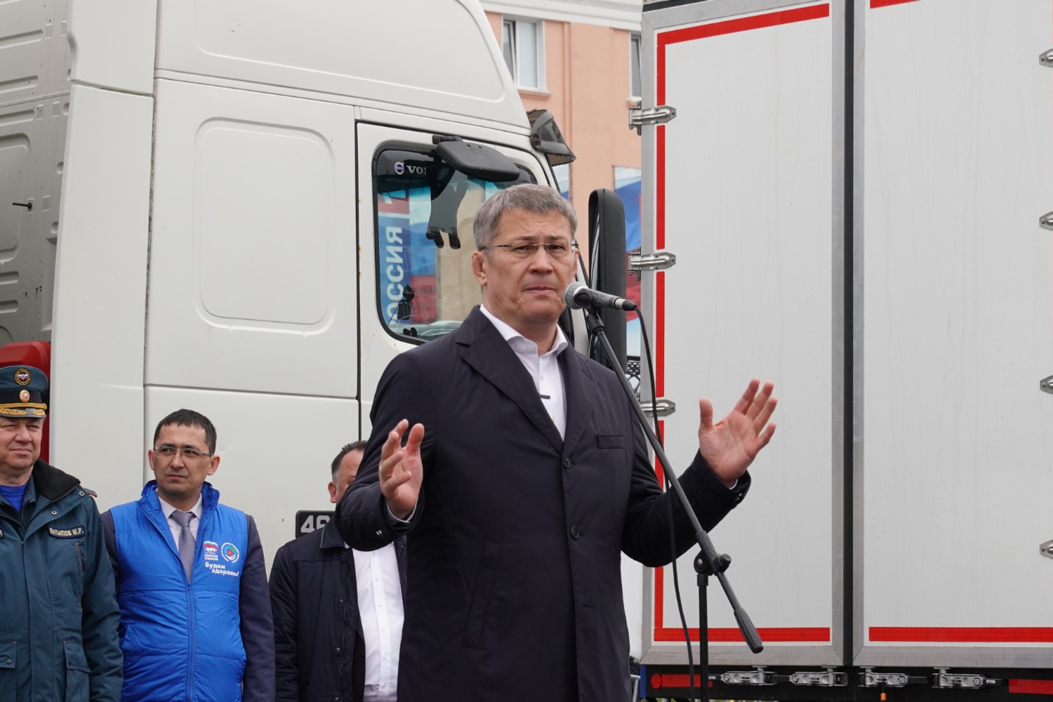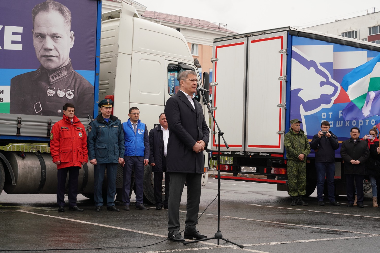 «Мы уже почти 600 тонн грузов собрали для жителей ДНР и ЛНР. Когда мы были в Донецке, нас попросили помочь республикам и стройматериалами, им там многое надо восстанавливать. Мы давно уже протянули руку дружбы жителям Донбасса, будут и дальше уходить колонны. Очень сильно нам помогает бизнес, руководители крупных предприятий. Я им за это очень благодарен. Я хочу поблагодарить участников гумконвоя, в первую очередь водителей. Это непростое и небезопасное дело. Вы практически с риском для жизни и здоровья выполняете эту непростую работу, берегите себя. Благодарю всех неравнодушных людей, которые объединились и помогают жителям Донбасса. Это время хотя и непростое для нашей страны, но мы выстоим», - сказал Глава Башкортостана.