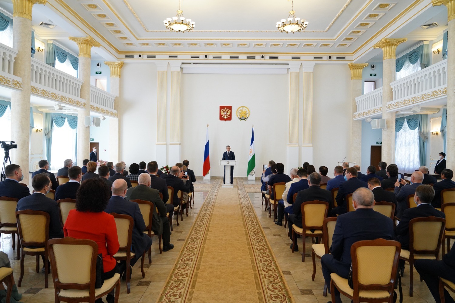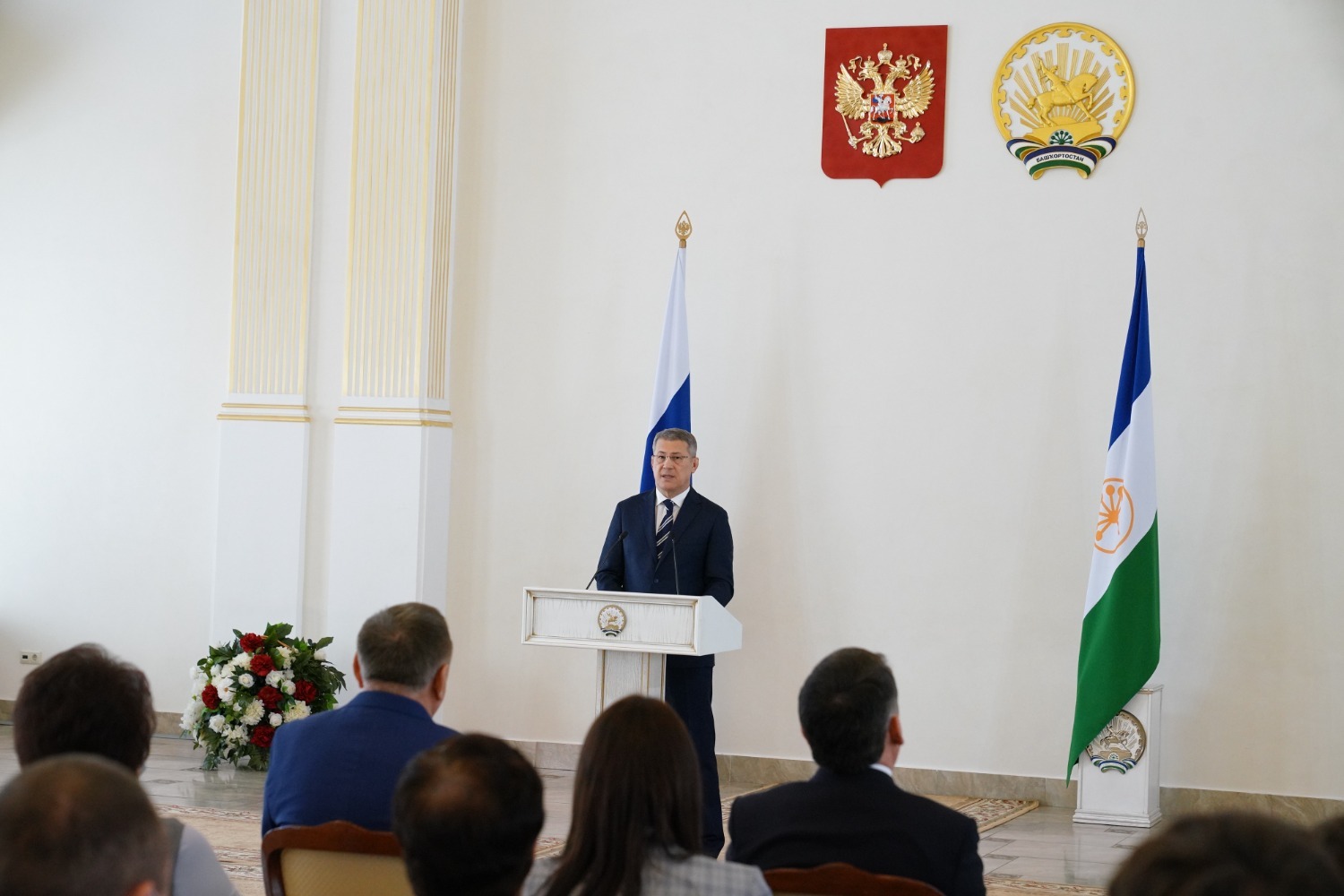 В зале собрались замечательные профессионалы, известные труженики, которые своим добросовестным трудом, талантом делают жизнь в нашей республике и стране успешной, сказал руководитель республики, открывая церемонию награждения. Он отметил, что все люди, которые собрались, вносят значимый вклад в развитие экономики, образования, науки, культуры и в том, что Башкортостан является одним из успешных, ведущих регионов России, велика их заслуга.