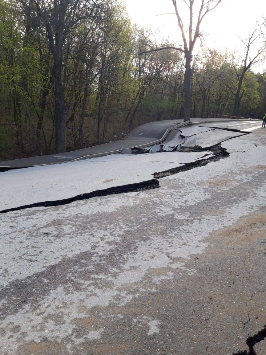 ЧП зафиксировано в Уфе на улице Лесной проезд рядом с жилой зоной. Там, по всей видимости, из-за дождей, «поехал» асфальт и образовалась просадка грунта. Как сообщил мэр столицы Башкирии Ратмир Мавлиев, первое обследование показало, что диаметр воронки составляет 50 метров, глубина — пять метров.