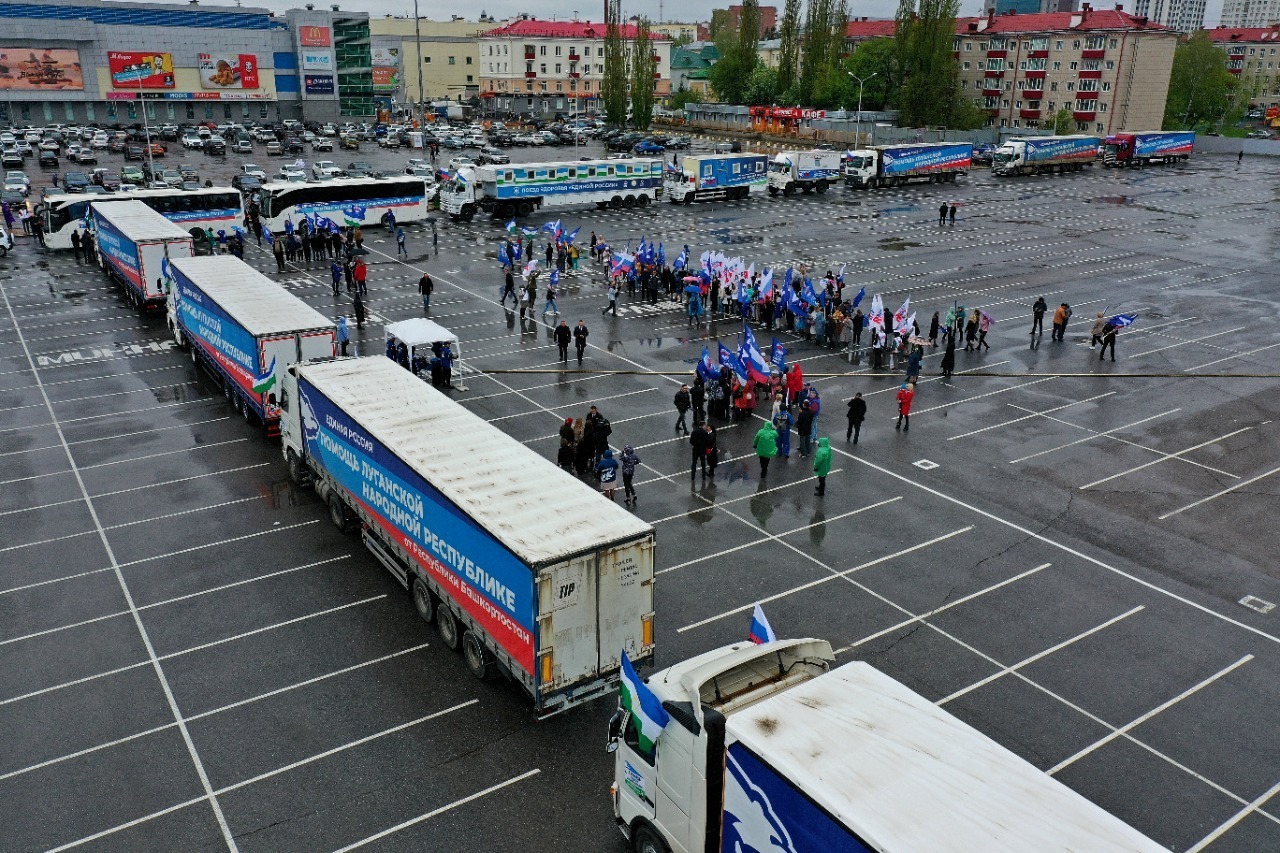 «Сегодня, в дни независимости Донецкой и Луганской народных республик, это выглядит очень символично. Мы отправляем сегодня в помощь жителям Донбасса большой конвой, который состоит не только из гуманитарных грузов и техники, туда едут большое количество медиков, которые там будут работать длительное время. Они там будут оказывать первичную медико-санитарную медицинскую помощь, будут работать в поликлиниках и больницах. Выезжает сегодня и большая команда дорожников, которые окажут помощь в пусконаладочных работах асфальтобетонного завода и ремонте дорожного покрытия. Едет большая команда специалистов ЖКХ, перед всеми ними стоит задача помочь восстановить инфраструктуру. Убежден, что мы вместе сделаем все необходимое, чтобы быстрее восстановился мир и была одержана победа над неонацистами», - сказал руководитель администрации Главы Башкортостана Максим Забелин.