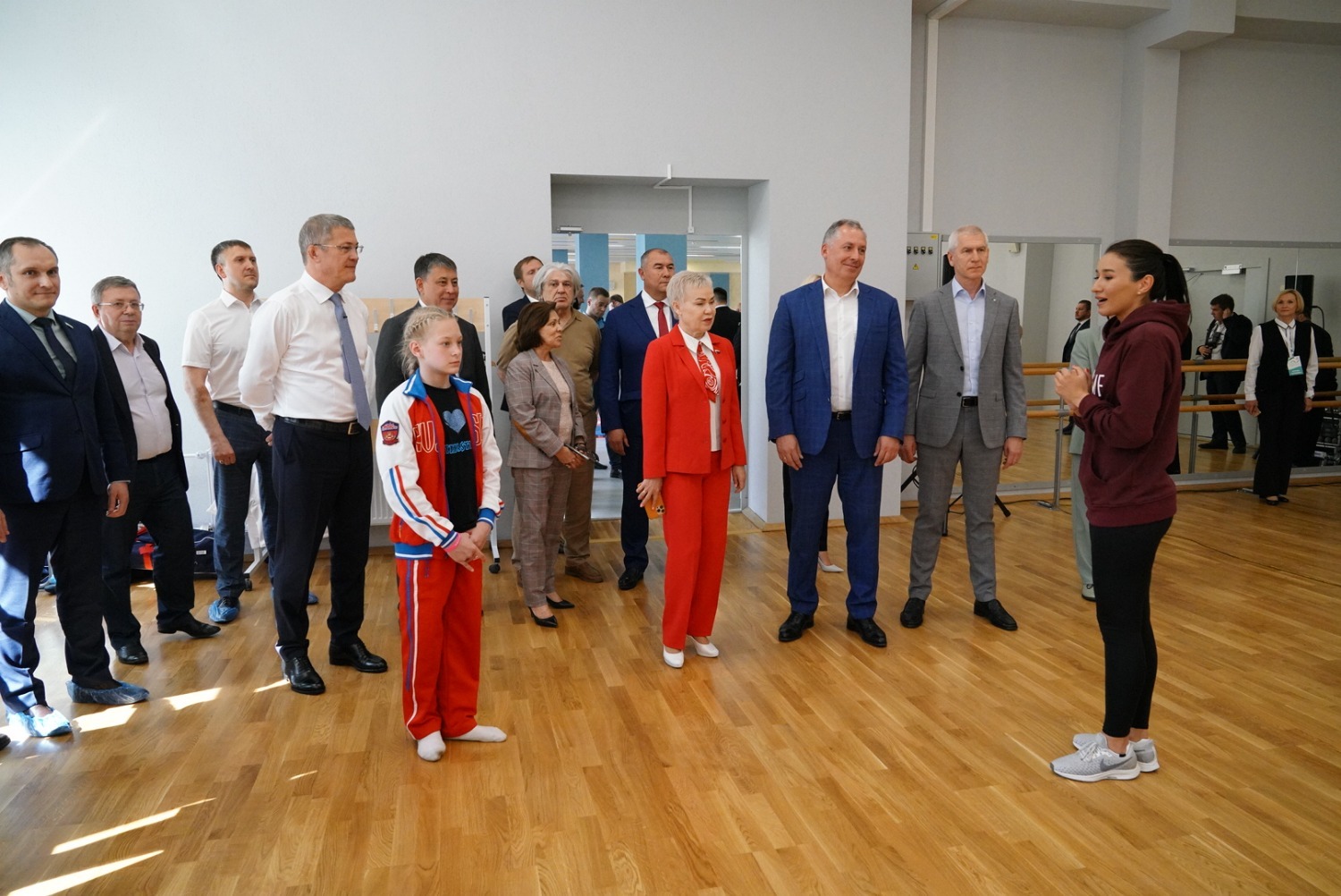 Радий Хабиров, Олег Матыцин и высокие гости оценили возможности Центра спортивной гимнастики, в котором помимо учебно-тренировочного процесса, можно проводить всероссийские и международные соревнования. Здесь имеется специализированный гимнастический зал с трибунами на 310 мест, тренировочный гимнастический зал, зал хореографии, буфет на 48 мест, медицинские кабинеты, реабилитационный зал, душевые и административные помещения.