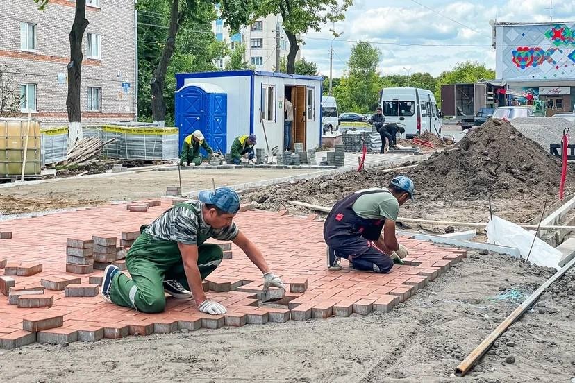«Выполнены все демонтажные работы. Ведётся разработка грунта под дорожки, вертикальная планировка, подготовка основания и укладка тротуарной плитки, завоз материала», — написал мэр города.