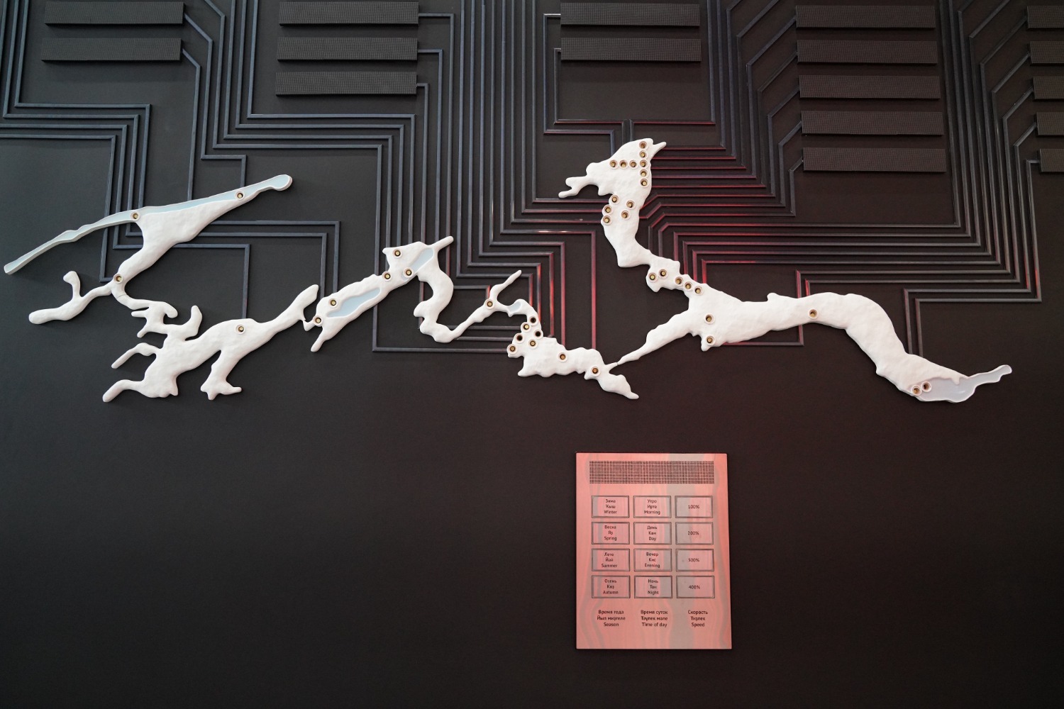 Экспозиция включает семь тематических блоков: «Таймлайн», «Медиазал», «Наскальное искусство», «Археология», «Естественно-научный», «Сохранение», «Эпос Урал-батыр». Каждая из них уникальна по-своему.
