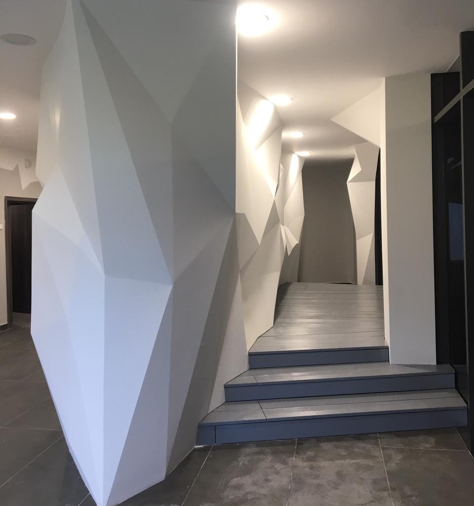Над созданием комнаты наскальной живописи работала команда дизайнера Тимура Сабитова. Нашел технологическое решение и создал на компьютере макет Чингиз Мазитов. Абстрактную фигуру уже на месте по чертежам собирали мастера Радик Халиков, Григорий Панфилов, Ринат Шафиков.