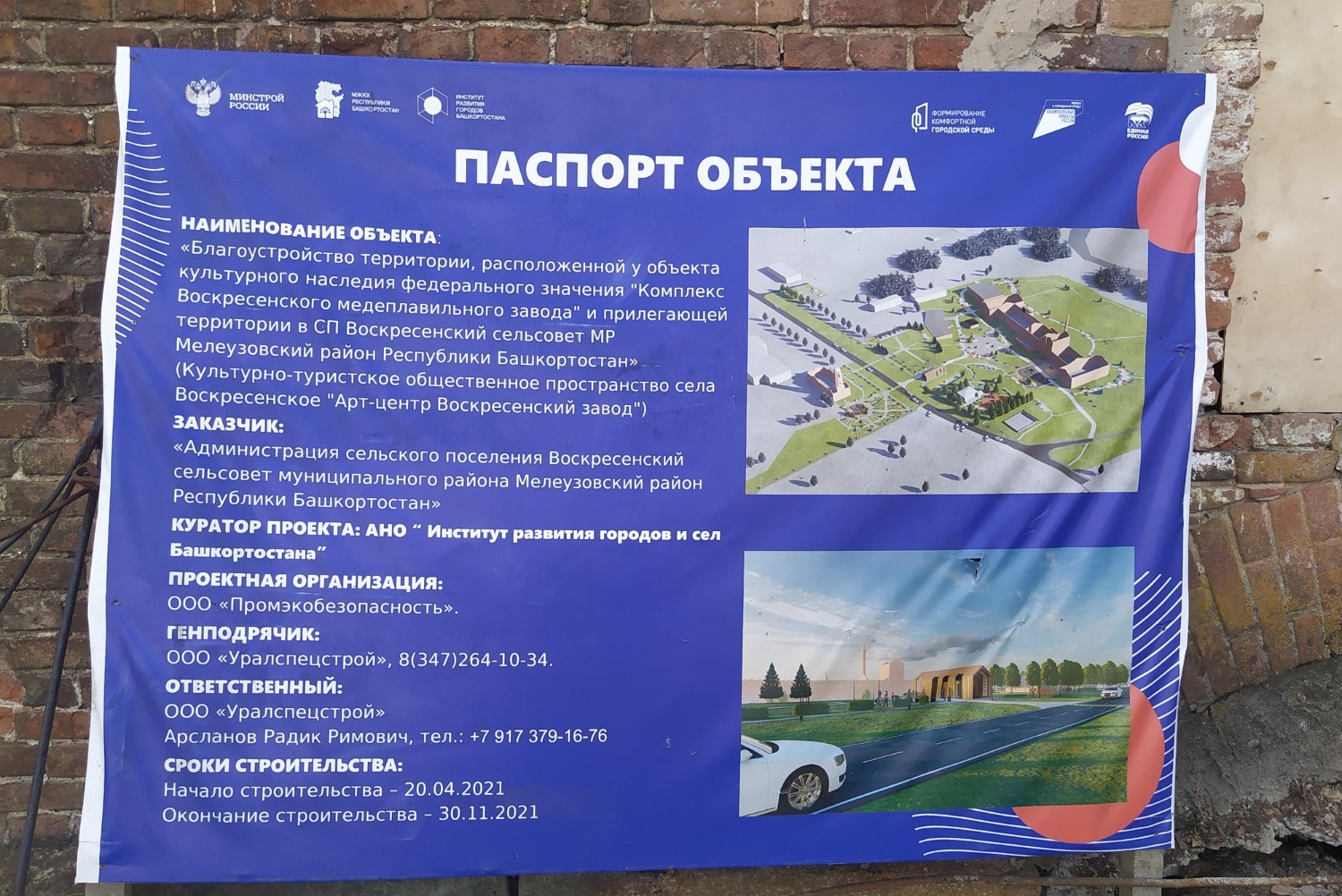 Напомним: проект концепции преобразования территории вокруг останков старейшего на Урале медеплавильного завода подготовили специалисты Института развития городов Башкортостана, Московского центра урбанистики, администрации Воскресенского сельсовета совместно с жителями села Воскресенского. Напротив завода у церкви реконструирована купель, построена пергола (подкова) с вмонтированными раздевалками.